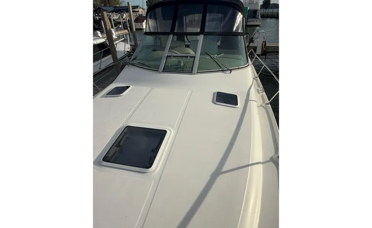 Freshwater / Great Lakes boat since new this vessel features Twin MerCruiser 350-Magnum 300-hp Gas Engine's with MAG MPI 350 V-Drive Engines (Note: Starboard Engine Replaced 2025 with only 35 hours). Notable features include but are not limited to the following: Air-Conditioning & Heat, Head (Vacuflush) w/Vanity/Sink/Shower, Windlass Anchor, Garmin Color Chartplotter, Raytheoon VHF Radio, Premium Stereo system with CD Player, Cockpit Speakers, Cockpit Wet Bar w/Sink, New Aquadek on swim platform, Canvas Package (Camper Top w/Strata-Glass & Screens), Snap-in Snap-out Cockpit Carpeting, and MUCH more!
