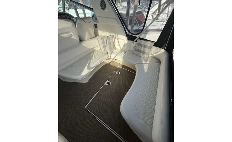 Freshwater / Great Lakes boat since new this vessel features Twin MerCruiser 350-Magnum 300-hp Gas Engine's with MAG MPI 350 V-Drive Engines (Note: Starboard Engine Replaced 2025 with only 35 hours). Notable features include but are not limited to the following: Air-Conditioning & Heat, Head (Vacuflush) w/Vanity/Sink/Shower, Windlass Anchor, Garmin Color Chartplotter, Raytheoon VHF Radio, Premium Stereo system with CD Player, Cockpit Speakers, Cockpit Wet Bar w/Sink, New Aquadek on swim platform, Canvas Package (Camper Top w/Strata-Glass & Screens), Snap-in Snap-out Cockpit Carpeting, and MUCH more!