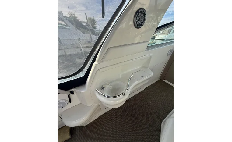 Freshwater / Great Lakes boat since new this vessel features Twin MerCruiser 350-Magnum 300-hp Gas Engine's with MAG MPI 350 V-Drive Engines (Note: Starboard Engine Replaced 2025 with only 35 hours). Notable features include but are not limited to the following: Air-Conditioning & Heat, Head (Vacuflush) w/Vanity/Sink/Shower, Windlass Anchor, Garmin Color Chartplotter, Raytheoon VHF Radio, Premium Stereo system with CD Player, Cockpit Speakers, Cockpit Wet Bar w/Sink, New Aquadek on swim platform, Canvas Package (Camper Top w/Strata-Glass & Screens), Snap-in Snap-out Cockpit Carpeting, and MUCH more!