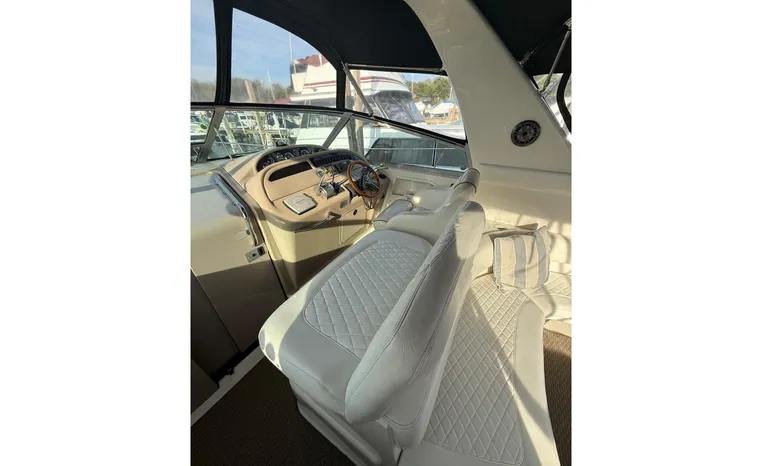 Freshwater / Great Lakes boat since new this vessel features Twin MerCruiser 350-Magnum 300-hp Gas Engine's with MAG MPI 350 V-Drive Engines (Note: Starboard Engine Replaced 2025 with only 35 hours). Notable features include but are not limited to the following: Air-Conditioning & Heat, Head (Vacuflush) w/Vanity/Sink/Shower, Windlass Anchor, Garmin Color Chartplotter, Raytheoon VHF Radio, Premium Stereo system with CD Player, Cockpit Speakers, Cockpit Wet Bar w/Sink, New Aquadek on swim platform, Canvas Package (Camper Top w/Strata-Glass & Screens), Snap-in Snap-out Cockpit Carpeting, and MUCH more!