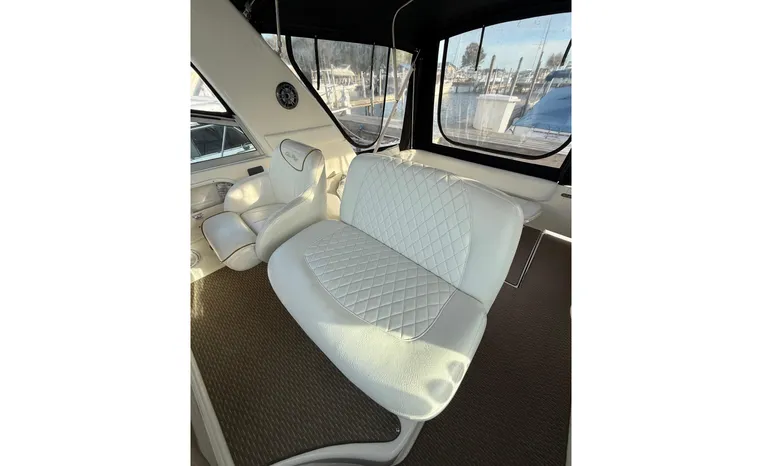 Freshwater / Great Lakes boat since new this vessel features Twin MerCruiser 350-Magnum 300-hp Gas Engine's with MAG MPI 350 V-Drive Engines (Note: Starboard Engine Replaced 2025 with only 35 hours). Notable features include but are not limited to the following: Air-Conditioning & Heat, Head (Vacuflush) w/Vanity/Sink/Shower, Windlass Anchor, Garmin Color Chartplotter, Raytheoon VHF Radio, Premium Stereo system with CD Player, Cockpit Speakers, Cockpit Wet Bar w/Sink, New Aquadek on swim platform, Canvas Package (Camper Top w/Strata-Glass & Screens), Snap-in Snap-out Cockpit Carpeting, and MUCH more!