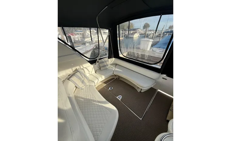 Freshwater / Great Lakes boat since new this vessel features Twin MerCruiser 350-Magnum 300-hp Gas Engine's with MAG MPI 350 V-Drive Engines (Note: Starboard Engine Replaced 2025 with only 35 hours). Notable features include but are not limited to the following: Air-Conditioning & Heat, Head (Vacuflush) w/Vanity/Sink/Shower, Windlass Anchor, Garmin Color Chartplotter, Raytheoon VHF Radio, Premium Stereo system with CD Player, Cockpit Speakers, Cockpit Wet Bar w/Sink, New Aquadek on swim platform, Canvas Package (Camper Top w/Strata-Glass & Screens), Snap-in Snap-out Cockpit Carpeting, and MUCH more!