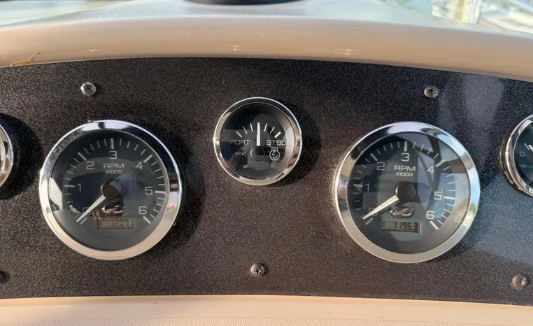 Freshwater / Great Lakes boat since new this vessel features Twin MerCruiser 350-Magnum 300-hp Gas Engine's with MAG MPI 350 V-Drive Engines (Note: Starboard Engine Replaced 2025 with only 35 hours). Notable features include but are not limited to the following: Air-Conditioning & Heat, Head (Vacuflush) w/Vanity/Sink/Shower, Windlass Anchor, Garmin Color Chartplotter, Raytheoon VHF Radio, Premium Stereo system with CD Player, Cockpit Speakers, Cockpit Wet Bar w/Sink, New Aquadek on swim platform, Canvas Package (Camper Top w/Strata-Glass & Screens), Snap-in Snap-out Cockpit Carpeting, and MUCH more!