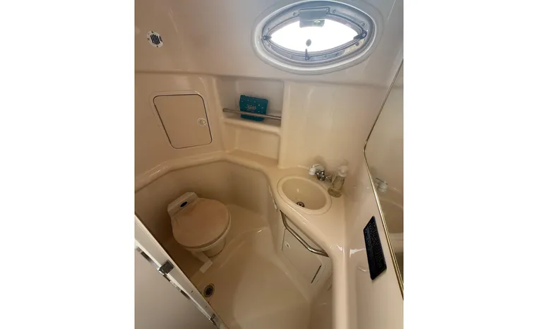 Freshwater / Great Lakes boat since new this vessel features Twin MerCruiser 350-Magnum 300-hp Gas Engine's with MAG MPI 350 V-Drive Engines (Note: Starboard Engine Replaced 2025 with only 35 hours). Notable features include but are not limited to the following: Air-Conditioning & Heat, Head (Vacuflush) w/Vanity/Sink/Shower, Windlass Anchor, Garmin Color Chartplotter, Raytheoon VHF Radio, Premium Stereo system with CD Player, Cockpit Speakers, Cockpit Wet Bar w/Sink, New Aquadek on swim platform, Canvas Package (Camper Top w/Strata-Glass & Screens), Snap-in Snap-out Cockpit Carpeting, and MUCH more!