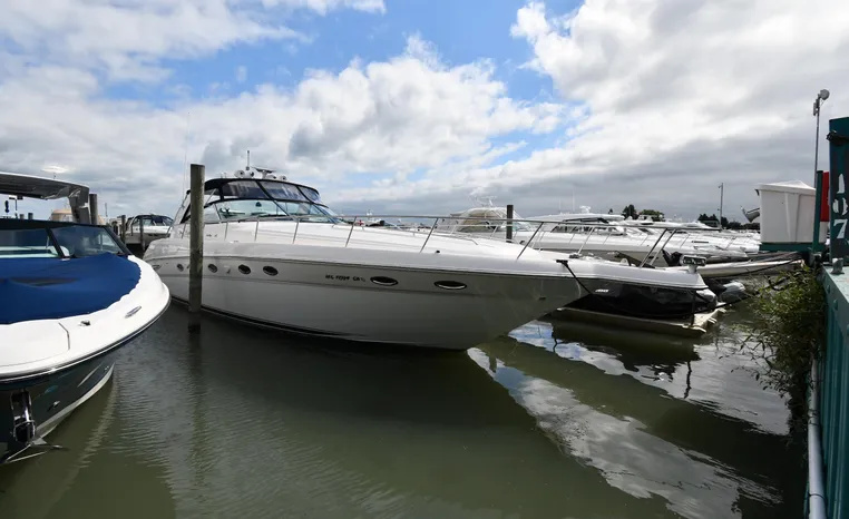 Freshwater / Great Lakes boat since new this vessel features Twin Caterpillar 3208 435-hp Diesel Engine's. Notable features include but are not limited to the following: Air-Conditioning & Heat (2-Units), (2) Heads (Vacuflush) w/Vanity/Sink/Stall-Shower, Cherry Cabinetry, Windlass Anchor w/Forward Pedal-Controls (Note Forward Freshwater Washdown), Hydraulic Swim-Platform, Canvas Package (Forward Convertible-Top w/Forward / Side-Windows / Aft Convertible-Top w/3-Piece Slant-Back Rear), Cockpit Wet Bar w/Sink, Westerbeke 8.0kw Generator, NEW 2025 Electronics Package (Garmin GPSMAP 1643 MFD w/GPS/Chartplotter, Garmin GPSMAP 943 XSV w/Autopilot Interface, Garmin VHF 115 Marine Radio, Starlink w/Seaview-Mount (Professional Install), Premium Fusion Sound System w/(2) Sub-Woofers/AMP/Wired Remote-Control (Note Bluetooth) - Extensive JL-Audio Speakers Throughout Cockpit / Swim-Platform - Note Interface NEMA2000 w/Garmin MFD, and MUCH more!