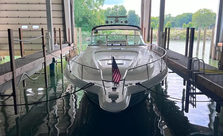 Freshwater / Great Lakes boat since new this vessel features Twin Caterpillar 3208 435-hp Diesel Engine's. Notable features include but are not limited to the following: Air-Conditioning & Heat (2-Units), (2) Heads (Vacuflush) w/Vanity/Sink/Stall-Shower, Cherry Cabinetry, Windlass Anchor w/Forward Pedal-Controls (Note Forward Freshwater Washdown), Hydraulic Swim-Platform, Canvas Package (Forward Convertible-Top w/Forward / Side-Windows / Aft Convertible-Top w/3-Piece Slant-Back Rear), Cockpit Wet Bar w/Sink, Westerbeke 8.0kw Generator, NEW 2025 Electronics Package (Garmin GPSMAP 1643 MFD w/GPS/Chartplotter, Garmin GPSMAP 943 XSV w/Autopilot Interface, Garmin VHF 115 Marine Radio, Starlink w/Seaview-Mount (Professional Install), Premium Fusion Sound System w/(2) Sub-Woofers/AMP/Wired Remote-Control (Note Bluetooth) - Extensive JL-Audio Speakers Throughout Cockpit / Swim-Platform - Note Interface NEMA2000 w/Garmin MFD, and MUCH more!