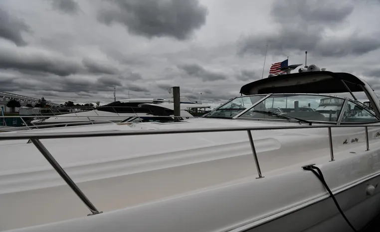 Freshwater / Great Lakes boat since new this vessel features Twin Caterpillar 3208 435-hp Diesel Engine's. Notable features include but are not limited to the following: Air-Conditioning & Heat (2-Units), (2) Heads (Vacuflush) w/Vanity/Sink/Stall-Shower, Cherry Cabinetry, Windlass Anchor w/Forward Pedal-Controls (Note Forward Freshwater Washdown), Hydraulic Swim-Platform, Canvas Package (Forward Convertible-Top w/Forward / Side-Windows / Aft Convertible-Top w/3-Piece Slant-Back Rear), Cockpit Wet Bar w/Sink, Westerbeke 8.0kw Generator, NEW 2025 Electronics Package (Garmin GPSMAP 1643 MFD w/GPS/Chartplotter, Garmin GPSMAP 943 XSV w/Autopilot Interface, Garmin VHF 115 Marine Radio, Starlink w/Seaview-Mount (Professional Install), Premium Fusion Sound System w/(2) Sub-Woofers/AMP/Wired Remote-Control (Note Bluetooth) - Extensive JL-Audio Speakers Throughout Cockpit / Swim-Platform - Note Interface NEMA2000 w/Garmin MFD, and MUCH more!