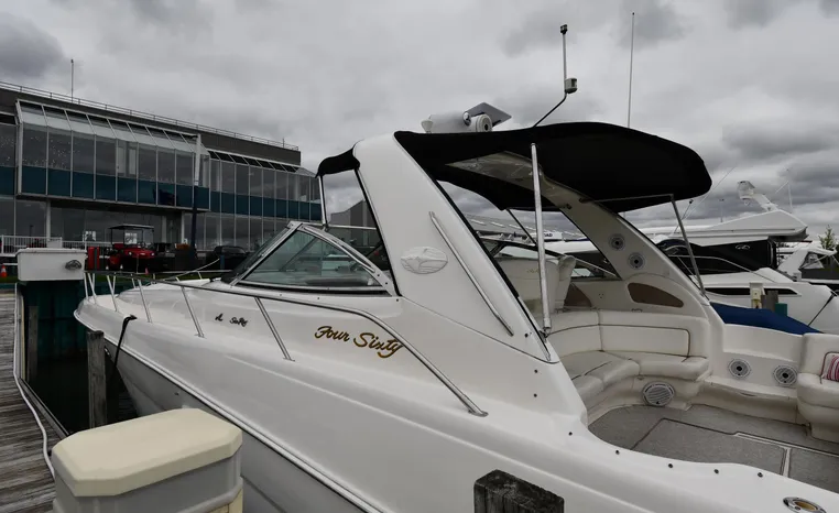 Freshwater / Great Lakes boat since new this vessel features Twin Caterpillar 3208 435-hp Diesel Engine's. Notable features include but are not limited to the following: Air-Conditioning & Heat (2-Units), (2) Heads (Vacuflush) w/Vanity/Sink/Stall-Shower, Cherry Cabinetry, Windlass Anchor w/Forward Pedal-Controls (Note Forward Freshwater Washdown), Hydraulic Swim-Platform, Canvas Package (Forward Convertible-Top w/Forward / Side-Windows / Aft Convertible-Top w/3-Piece Slant-Back Rear), Cockpit Wet Bar w/Sink, Westerbeke 8.0kw Generator, NEW 2025 Electronics Package (Garmin GPSMAP 1643 MFD w/GPS/Chartplotter, Garmin GPSMAP 943 XSV w/Autopilot Interface, Garmin VHF 115 Marine Radio, Starlink w/Seaview-Mount (Professional Install), Premium Fusion Sound System w/(2) Sub-Woofers/AMP/Wired Remote-Control (Note Bluetooth) - Extensive JL-Audio Speakers Throughout Cockpit / Swim-Platform - Note Interface NEMA2000 w/Garmin MFD, and MUCH more!
