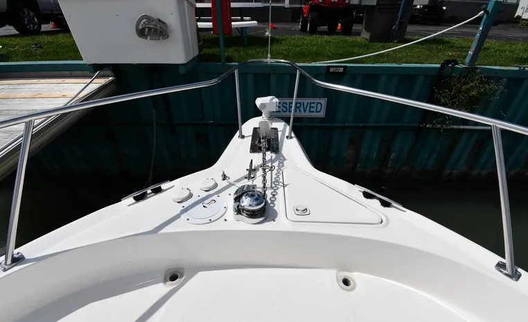 Freshwater / Great Lakes boat since new this vessel features Twin Caterpillar 3208 435-hp Diesel Engine's. Notable features include but are not limited to the following: Air-Conditioning & Heat (2-Units), (2) Heads (Vacuflush) w/Vanity/Sink/Stall-Shower, Cherry Cabinetry, Windlass Anchor w/Forward Pedal-Controls (Note Forward Freshwater Washdown), Hydraulic Swim-Platform, Canvas Package (Forward Convertible-Top w/Forward / Side-Windows / Aft Convertible-Top w/3-Piece Slant-Back Rear), Cockpit Wet Bar w/Sink, Westerbeke 8.0kw Generator, NEW 2025 Electronics Package (Garmin GPSMAP 1643 MFD w/GPS/Chartplotter, Garmin GPSMAP 943 XSV w/Autopilot Interface, Garmin VHF 115 Marine Radio, Starlink w/Seaview-Mount (Professional Install), Premium Fusion Sound System w/(2) Sub-Woofers/AMP/Wired Remote-Control (Note Bluetooth) - Extensive JL-Audio Speakers Throughout Cockpit / Swim-Platform - Note Interface NEMA2000 w/Garmin MFD, and MUCH more!