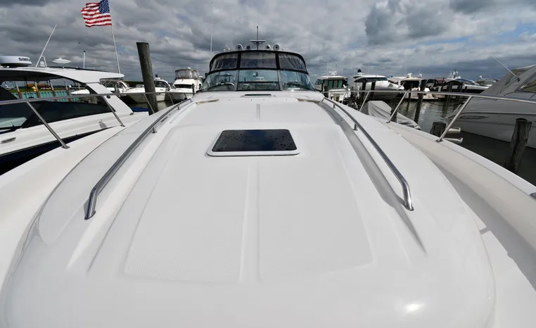 Freshwater / Great Lakes boat since new this vessel features Twin Caterpillar 3208 435-hp Diesel Engine's. Notable features include but are not limited to the following: Air-Conditioning & Heat (2-Units), (2) Heads (Vacuflush) w/Vanity/Sink/Stall-Shower, Cherry Cabinetry, Windlass Anchor w/Forward Pedal-Controls (Note Forward Freshwater Washdown), Hydraulic Swim-Platform, Canvas Package (Forward Convertible-Top w/Forward / Side-Windows / Aft Convertible-Top w/3-Piece Slant-Back Rear), Cockpit Wet Bar w/Sink, Westerbeke 8.0kw Generator, NEW 2025 Electronics Package (Garmin GPSMAP 1643 MFD w/GPS/Chartplotter, Garmin GPSMAP 943 XSV w/Autopilot Interface, Garmin VHF 115 Marine Radio, Starlink w/Seaview-Mount (Professional Install), Premium Fusion Sound System w/(2) Sub-Woofers/AMP/Wired Remote-Control (Note Bluetooth) - Extensive JL-Audio Speakers Throughout Cockpit / Swim-Platform - Note Interface NEMA2000 w/Garmin MFD, and MUCH more!