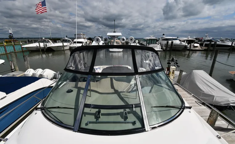 Freshwater / Great Lakes boat since new this vessel features Twin Caterpillar 3208 435-hp Diesel Engine's. Notable features include but are not limited to the following: Air-Conditioning & Heat (2-Units), (2) Heads (Vacuflush) w/Vanity/Sink/Stall-Shower, Cherry Cabinetry, Windlass Anchor w/Forward Pedal-Controls (Note Forward Freshwater Washdown), Hydraulic Swim-Platform, Canvas Package (Forward Convertible-Top w/Forward / Side-Windows / Aft Convertible-Top w/3-Piece Slant-Back Rear), Cockpit Wet Bar w/Sink, Westerbeke 8.0kw Generator, NEW 2025 Electronics Package (Garmin GPSMAP 1643 MFD w/GPS/Chartplotter, Garmin GPSMAP 943 XSV w/Autopilot Interface, Garmin VHF 115 Marine Radio, Starlink w/Seaview-Mount (Professional Install), Premium Fusion Sound System w/(2) Sub-Woofers/AMP/Wired Remote-Control (Note Bluetooth) - Extensive JL-Audio Speakers Throughout Cockpit / Swim-Platform - Note Interface NEMA2000 w/Garmin MFD, and MUCH more!