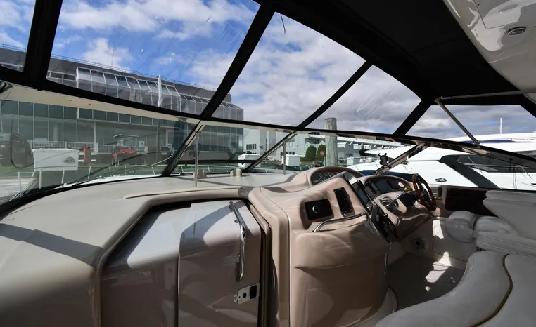Freshwater / Great Lakes boat since new this vessel features Twin Caterpillar 3208 435-hp Diesel Engine's. Notable features include but are not limited to the following: Air-Conditioning & Heat (2-Units), (2) Heads (Vacuflush) w/Vanity/Sink/Stall-Shower, Cherry Cabinetry, Windlass Anchor w/Forward Pedal-Controls (Note Forward Freshwater Washdown), Hydraulic Swim-Platform, Canvas Package (Forward Convertible-Top w/Forward / Side-Windows / Aft Convertible-Top w/3-Piece Slant-Back Rear), Cockpit Wet Bar w/Sink, Westerbeke 8.0kw Generator, NEW 2025 Electronics Package (Garmin GPSMAP 1643 MFD w/GPS/Chartplotter, Garmin GPSMAP 943 XSV w/Autopilot Interface, Garmin VHF 115 Marine Radio, Starlink w/Seaview-Mount (Professional Install), Premium Fusion Sound System w/(2) Sub-Woofers/AMP/Wired Remote-Control (Note Bluetooth) - Extensive JL-Audio Speakers Throughout Cockpit / Swim-Platform - Note Interface NEMA2000 w/Garmin MFD, and MUCH more!