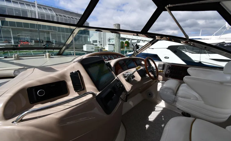 Freshwater / Great Lakes boat since new this vessel features Twin Caterpillar 3208 435-hp Diesel Engine's. Notable features include but are not limited to the following: Air-Conditioning & Heat (2-Units), (2) Heads (Vacuflush) w/Vanity/Sink/Stall-Shower, Cherry Cabinetry, Windlass Anchor w/Forward Pedal-Controls (Note Forward Freshwater Washdown), Hydraulic Swim-Platform, Canvas Package (Forward Convertible-Top w/Forward / Side-Windows / Aft Convertible-Top w/3-Piece Slant-Back Rear), Cockpit Wet Bar w/Sink, Westerbeke 8.0kw Generator, NEW 2025 Electronics Package (Garmin GPSMAP 1643 MFD w/GPS/Chartplotter, Garmin GPSMAP 943 XSV w/Autopilot Interface, Garmin VHF 115 Marine Radio, Starlink w/Seaview-Mount (Professional Install), Premium Fusion Sound System w/(2) Sub-Woofers/AMP/Wired Remote-Control (Note Bluetooth) - Extensive JL-Audio Speakers Throughout Cockpit / Swim-Platform - Note Interface NEMA2000 w/Garmin MFD, and MUCH more!