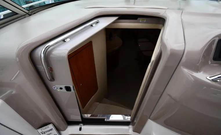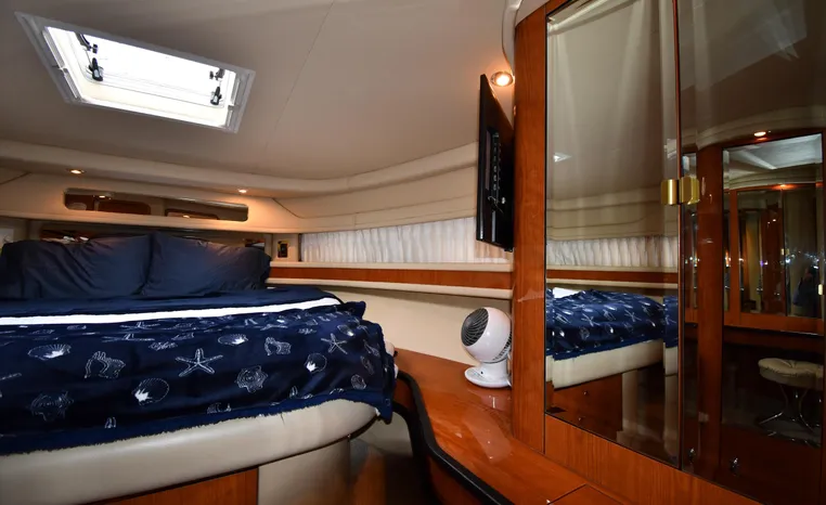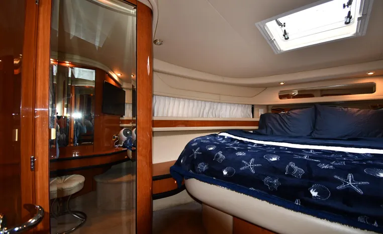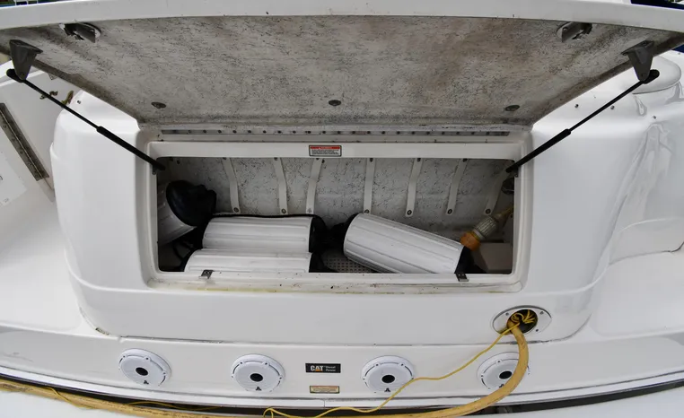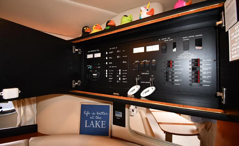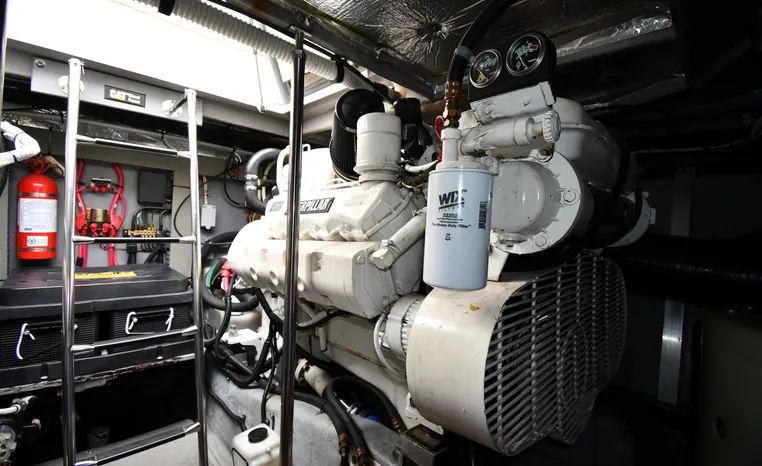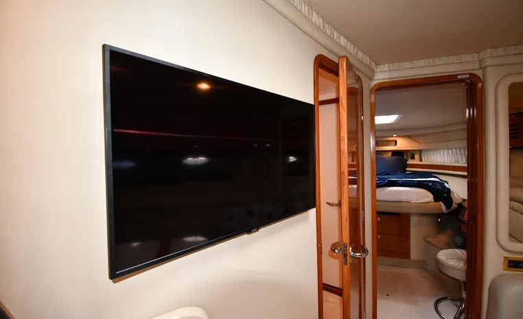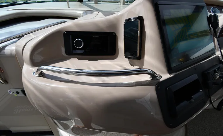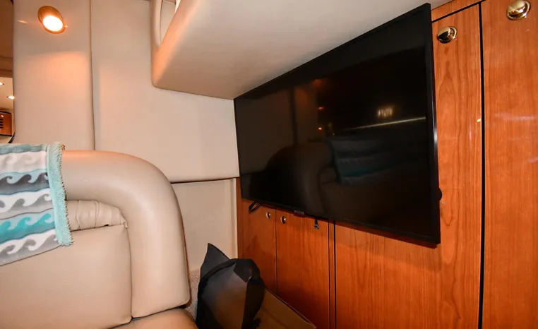 Broker Notes: Exterior finish is in far above average condition .. shine quality is incredible. Inside heated winter stored. $20k spent in 2025 weeks/Garmin NAV Upgrade (invoice on file), $30k in Fusion / JL-Audio Audio Equipment .. She's ready to entertain! Note LED Smart TV's in Forward Stateroom / Salon / Aft Mid-Cabin. VERY nice CAT Diesel vessel w/desirable cherry (Vitracore) optioned cabin interior, tan dashboard, hydraulic swim-platform. Please contact listing agent for further details.