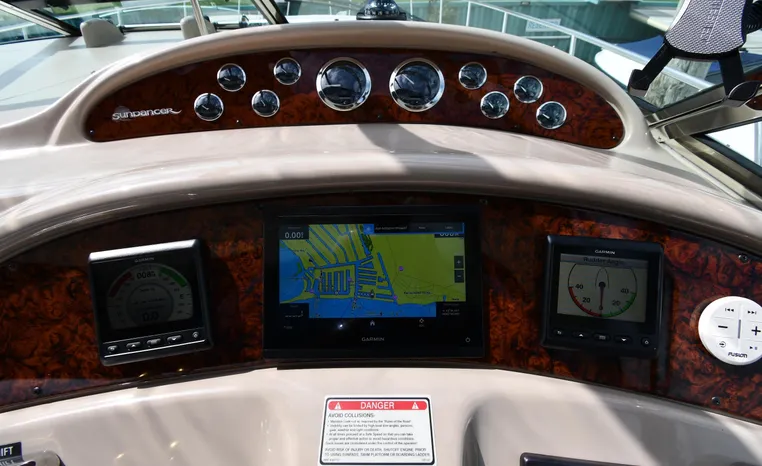 Freshwater / Great Lakes boat since new this vessel features Twin Caterpillar 3208 435-hp Diesel Engine's. Notable features include but are not limited to the following: Air-Conditioning & Heat (2-Units), (2) Heads (Vacuflush) w/Vanity/Sink/Stall-Shower, Cherry Cabinetry, Windlass Anchor w/Forward Pedal-Controls (Note Forward Freshwater Washdown), Hydraulic Swim-Platform, Canvas Package (Forward Convertible-Top w/Forward / Side-Windows / Aft Convertible-Top w/3-Piece Slant-Back Rear), Cockpit Wet Bar w/Sink, Westerbeke 8.0kw Generator, NEW 2025 Electronics Package (Garmin GPSMAP 1643 MFD w/GPS/Chartplotter, Garmin GPSMAP 943 XSV w/Autopilot Interface, Garmin VHF 115 Marine Radio, Starlink w/Seaview-Mount (Professional Install), Premium Fusion Sound System w/(2) Sub-Woofers/AMP/Wired Remote-Control (Note Bluetooth) - Extensive JL-Audio Speakers Throughout Cockpit / Swim-Platform - Note Interface NEMA2000 w/Garmin MFD, and MUCH more!