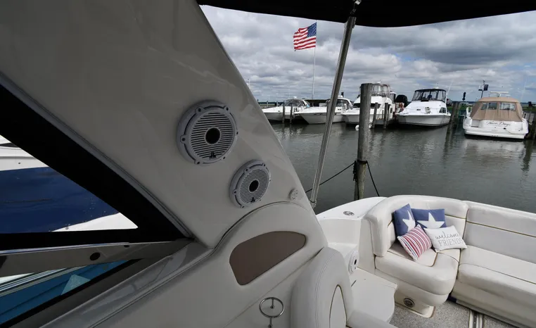 Freshwater / Great Lakes boat since new this vessel features Twin Caterpillar 3208 435-hp Diesel Engine's. Notable features include but are not limited to the following: Air-Conditioning & Heat (2-Units), (2) Heads (Vacuflush) w/Vanity/Sink/Stall-Shower, Cherry Cabinetry, Windlass Anchor w/Forward Pedal-Controls (Note Forward Freshwater Washdown), Hydraulic Swim-Platform, Canvas Package (Forward Convertible-Top w/Forward / Side-Windows / Aft Convertible-Top w/3-Piece Slant-Back Rear), Cockpit Wet Bar w/Sink, Westerbeke 8.0kw Generator, NEW 2025 Electronics Package (Garmin GPSMAP 1643 MFD w/GPS/Chartplotter, Garmin GPSMAP 943 XSV w/Autopilot Interface, Garmin VHF 115 Marine Radio, Starlink w/Seaview-Mount (Professional Install), Premium Fusion Sound System w/(2) Sub-Woofers/AMP/Wired Remote-Control (Note Bluetooth) - Extensive JL-Audio Speakers Throughout Cockpit / Swim-Platform - Note Interface NEMA2000 w/Garmin MFD, and MUCH more!