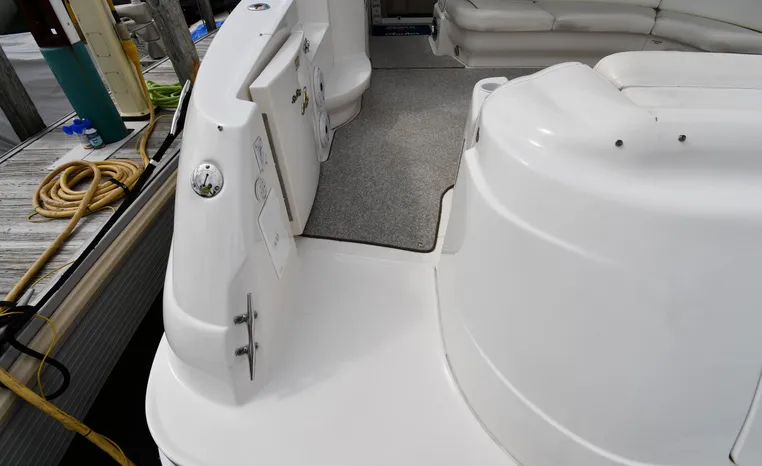 Freshwater / Great Lakes boat since new this vessel features Twin Caterpillar 3208 435-hp Diesel Engine's. Notable features include but are not limited to the following: Air-Conditioning & Heat (2-Units), (2) Heads (Vacuflush) w/Vanity/Sink/Stall-Shower, Cherry Cabinetry, Windlass Anchor w/Forward Pedal-Controls (Note Forward Freshwater Washdown), Hydraulic Swim-Platform, Canvas Package (Forward Convertible-Top w/Forward / Side-Windows / Aft Convertible-Top w/3-Piece Slant-Back Rear), Cockpit Wet Bar w/Sink, Westerbeke 8.0kw Generator, NEW 2025 Electronics Package (Garmin GPSMAP 1643 MFD w/GPS/Chartplotter, Garmin GPSMAP 943 XSV w/Autopilot Interface, Garmin VHF 115 Marine Radio, Starlink w/Seaview-Mount (Professional Install), Premium Fusion Sound System w/(2) Sub-Woofers/AMP/Wired Remote-Control (Note Bluetooth) - Extensive JL-Audio Speakers Throughout Cockpit / Swim-Platform - Note Interface NEMA2000 w/Garmin MFD, and MUCH more!