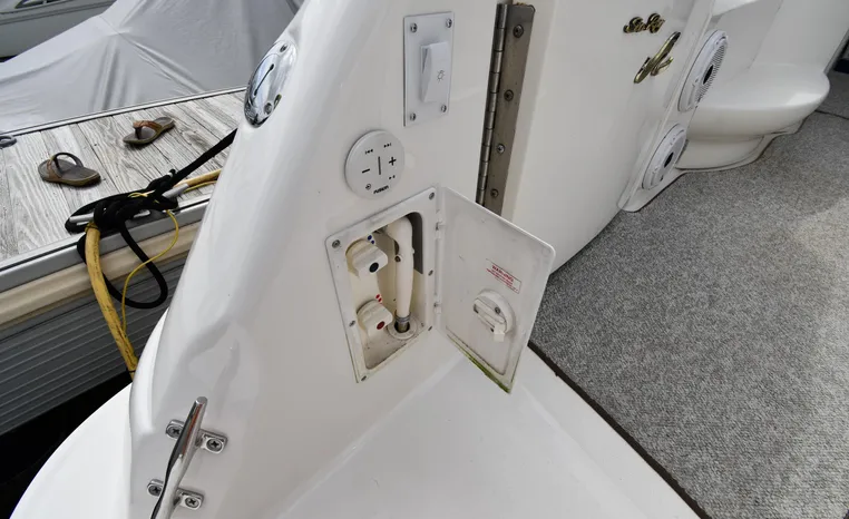 Freshwater / Great Lakes boat since new this vessel features Twin Caterpillar 3208 435-hp Diesel Engine's. Notable features include but are not limited to the following: Air-Conditioning & Heat (2-Units), (2) Heads (Vacuflush) w/Vanity/Sink/Stall-Shower, Cherry Cabinetry, Windlass Anchor w/Forward Pedal-Controls (Note Forward Freshwater Washdown), Hydraulic Swim-Platform, Canvas Package (Forward Convertible-Top w/Forward / Side-Windows / Aft Convertible-Top w/3-Piece Slant-Back Rear), Cockpit Wet Bar w/Sink, Westerbeke 8.0kw Generator, NEW 2025 Electronics Package (Garmin GPSMAP 1643 MFD w/GPS/Chartplotter, Garmin GPSMAP 943 XSV w/Autopilot Interface, Garmin VHF 115 Marine Radio, Starlink w/Seaview-Mount (Professional Install), Premium Fusion Sound System w/(2) Sub-Woofers/AMP/Wired Remote-Control (Note Bluetooth) - Extensive JL-Audio Speakers Throughout Cockpit / Swim-Platform - Note Interface NEMA2000 w/Garmin MFD, and MUCH more!