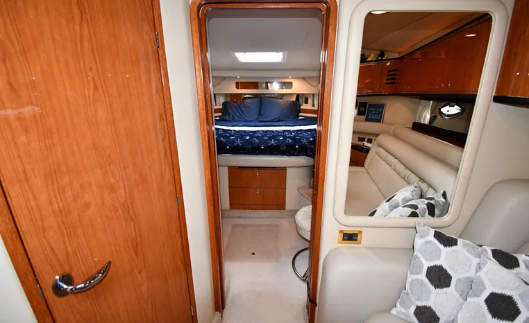 Freshwater / Great Lakes boat since new this vessel features Twin Caterpillar 3208 435-hp Diesel Engine's. Notable features include but are not limited to the following: Air-Conditioning & Heat (2-Units), (2) Heads (Vacuflush) w/Vanity/Sink/Stall-Shower, Cherry Cabinetry, Windlass Anchor w/Forward Pedal-Controls (Note Forward Freshwater Washdown), Hydraulic Swim-Platform, Canvas Package (Forward Convertible-Top w/Forward / Side-Windows / Aft Convertible-Top w/3-Piece Slant-Back Rear), Cockpit Wet Bar w/Sink, Westerbeke 8.0kw Generator, NEW 2025 Electronics Package (Garmin GPSMAP 1643 MFD w/GPS/Chartplotter, Garmin GPSMAP 943 XSV w/Autopilot Interface, Garmin VHF 115 Marine Radio, Starlink w/Seaview-Mount (Professional Install), Premium Fusion Sound System w/(2) Sub-Woofers/AMP/Wired Remote-Control (Note Bluetooth) - Extensive JL-Audio Speakers Throughout Cockpit / Swim-Platform - Note Interface NEMA2000 w/Garmin MFD, and MUCH more!
