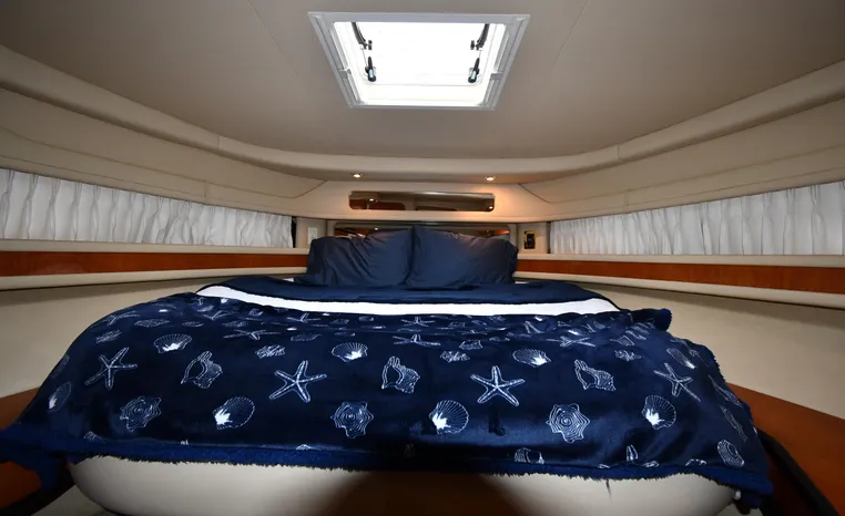 Freshwater / Great Lakes boat since new this vessel features Twin Caterpillar 3208 435-hp Diesel Engine's. Notable features include but are not limited to the following: Air-Conditioning & Heat (2-Units), (2) Heads (Vacuflush) w/Vanity/Sink/Stall-Shower, Cherry Cabinetry, Windlass Anchor w/Forward Pedal-Controls (Note Forward Freshwater Washdown), Hydraulic Swim-Platform, Canvas Package (Forward Convertible-Top w/Forward / Side-Windows / Aft Convertible-Top w/3-Piece Slant-Back Rear), Cockpit Wet Bar w/Sink, Westerbeke 8.0kw Generator, NEW 2025 Electronics Package (Garmin GPSMAP 1643 MFD w/GPS/Chartplotter, Garmin GPSMAP 943 XSV w/Autopilot Interface, Garmin VHF 115 Marine Radio, Starlink w/Seaview-Mount (Professional Install), Premium Fusion Sound System w/(2) Sub-Woofers/AMP/Wired Remote-Control (Note Bluetooth) - Extensive JL-Audio Speakers Throughout Cockpit / Swim-Platform - Note Interface NEMA2000 w/Garmin MFD, and MUCH more!