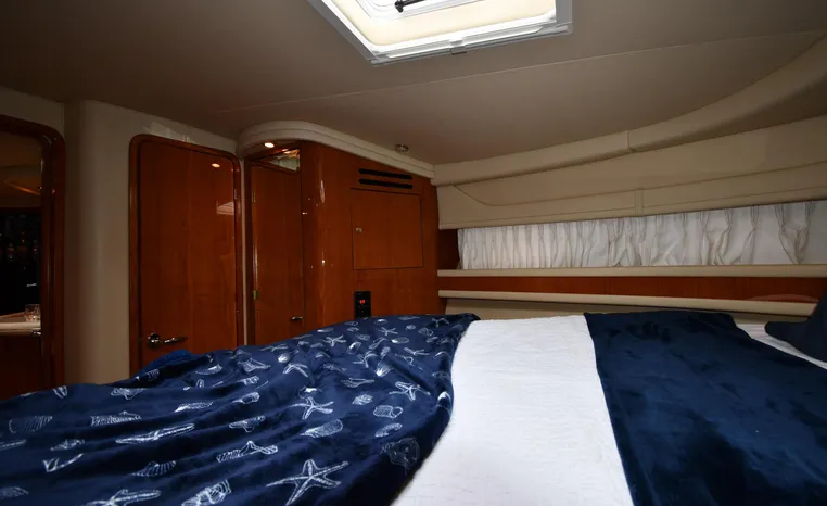 Freshwater / Great Lakes boat since new this vessel features Twin Caterpillar 3208 435-hp Diesel Engine's. Notable features include but are not limited to the following: Air-Conditioning & Heat (2-Units), (2) Heads (Vacuflush) w/Vanity/Sink/Stall-Shower, Cherry Cabinetry, Windlass Anchor w/Forward Pedal-Controls (Note Forward Freshwater Washdown), Hydraulic Swim-Platform, Canvas Package (Forward Convertible-Top w/Forward / Side-Windows / Aft Convertible-Top w/3-Piece Slant-Back Rear), Cockpit Wet Bar w/Sink, Westerbeke 8.0kw Generator, NEW 2025 Electronics Package (Garmin GPSMAP 1643 MFD w/GPS/Chartplotter, Garmin GPSMAP 943 XSV w/Autopilot Interface, Garmin VHF 115 Marine Radio, Starlink w/Seaview-Mount (Professional Install), Premium Fusion Sound System w/(2) Sub-Woofers/AMP/Wired Remote-Control (Note Bluetooth) - Extensive JL-Audio Speakers Throughout Cockpit / Swim-Platform - Note Interface NEMA2000 w/Garmin MFD, and MUCH more!