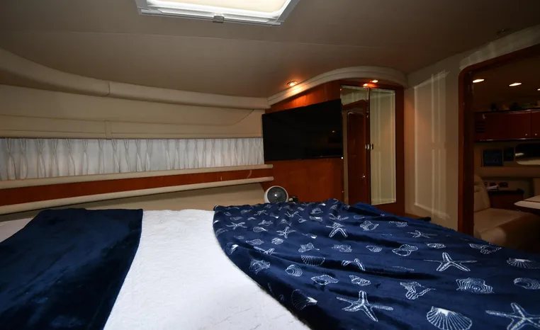 Freshwater / Great Lakes boat since new this vessel features Twin Caterpillar 3208 435-hp Diesel Engine's. Notable features include but are not limited to the following: Air-Conditioning & Heat (2-Units), (2) Heads (Vacuflush) w/Vanity/Sink/Stall-Shower, Cherry Cabinetry, Windlass Anchor w/Forward Pedal-Controls (Note Forward Freshwater Washdown), Hydraulic Swim-Platform, Canvas Package (Forward Convertible-Top w/Forward / Side-Windows / Aft Convertible-Top w/3-Piece Slant-Back Rear), Cockpit Wet Bar w/Sink, Westerbeke 8.0kw Generator, NEW 2025 Electronics Package (Garmin GPSMAP 1643 MFD w/GPS/Chartplotter, Garmin GPSMAP 943 XSV w/Autopilot Interface, Garmin VHF 115 Marine Radio, Starlink w/Seaview-Mount (Professional Install), Premium Fusion Sound System w/(2) Sub-Woofers/AMP/Wired Remote-Control (Note Bluetooth) - Extensive JL-Audio Speakers Throughout Cockpit / Swim-Platform - Note Interface NEMA2000 w/Garmin MFD, and MUCH more!