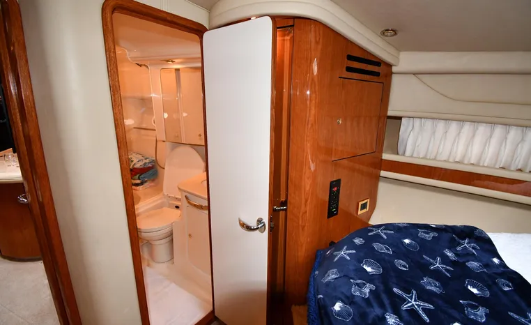 Freshwater / Great Lakes boat since new this vessel features Twin Caterpillar 3208 435-hp Diesel Engine's. Notable features include but are not limited to the following: Air-Conditioning & Heat (2-Units), (2) Heads (Vacuflush) w/Vanity/Sink/Stall-Shower, Cherry Cabinetry, Windlass Anchor w/Forward Pedal-Controls (Note Forward Freshwater Washdown), Hydraulic Swim-Platform, Canvas Package (Forward Convertible-Top w/Forward / Side-Windows / Aft Convertible-Top w/3-Piece Slant-Back Rear), Cockpit Wet Bar w/Sink, Westerbeke 8.0kw Generator, NEW 2025 Electronics Package (Garmin GPSMAP 1643 MFD w/GPS/Chartplotter, Garmin GPSMAP 943 XSV w/Autopilot Interface, Garmin VHF 115 Marine Radio, Starlink w/Seaview-Mount (Professional Install), Premium Fusion Sound System w/(2) Sub-Woofers/AMP/Wired Remote-Control (Note Bluetooth) - Extensive JL-Audio Speakers Throughout Cockpit / Swim-Platform - Note Interface NEMA2000 w/Garmin MFD, and MUCH more!