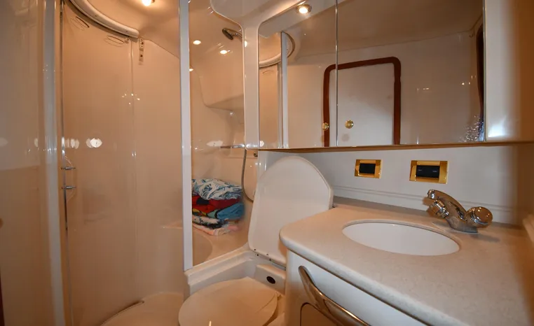 Freshwater / Great Lakes boat since new this vessel features Twin Caterpillar 3208 435-hp Diesel Engine's. Notable features include but are not limited to the following: Air-Conditioning & Heat (2-Units), (2) Heads (Vacuflush) w/Vanity/Sink/Stall-Shower, Cherry Cabinetry, Windlass Anchor w/Forward Pedal-Controls (Note Forward Freshwater Washdown), Hydraulic Swim-Platform, Canvas Package (Forward Convertible-Top w/Forward / Side-Windows / Aft Convertible-Top w/3-Piece Slant-Back Rear), Cockpit Wet Bar w/Sink, Westerbeke 8.0kw Generator, NEW 2025 Electronics Package (Garmin GPSMAP 1643 MFD w/GPS/Chartplotter, Garmin GPSMAP 943 XSV w/Autopilot Interface, Garmin VHF 115 Marine Radio, Starlink w/Seaview-Mount (Professional Install), Premium Fusion Sound System w/(2) Sub-Woofers/AMP/Wired Remote-Control (Note Bluetooth) - Extensive JL-Audio Speakers Throughout Cockpit / Swim-Platform - Note Interface NEMA2000 w/Garmin MFD, and MUCH more!