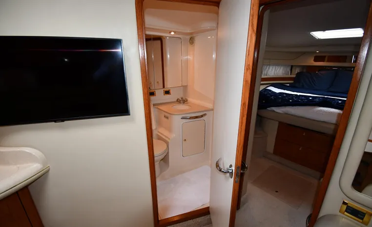 Freshwater / Great Lakes boat since new this vessel features Twin Caterpillar 3208 435-hp Diesel Engine's. Notable features include but are not limited to the following: Air-Conditioning & Heat (2-Units), (2) Heads (Vacuflush) w/Vanity/Sink/Stall-Shower, Cherry Cabinetry, Windlass Anchor w/Forward Pedal-Controls (Note Forward Freshwater Washdown), Hydraulic Swim-Platform, Canvas Package (Forward Convertible-Top w/Forward / Side-Windows / Aft Convertible-Top w/3-Piece Slant-Back Rear), Cockpit Wet Bar w/Sink, Westerbeke 8.0kw Generator, NEW 2025 Electronics Package (Garmin GPSMAP 1643 MFD w/GPS/Chartplotter, Garmin GPSMAP 943 XSV w/Autopilot Interface, Garmin VHF 115 Marine Radio, Starlink w/Seaview-Mount (Professional Install), Premium Fusion Sound System w/(2) Sub-Woofers/AMP/Wired Remote-Control (Note Bluetooth) - Extensive JL-Audio Speakers Throughout Cockpit / Swim-Platform - Note Interface NEMA2000 w/Garmin MFD, and MUCH more!