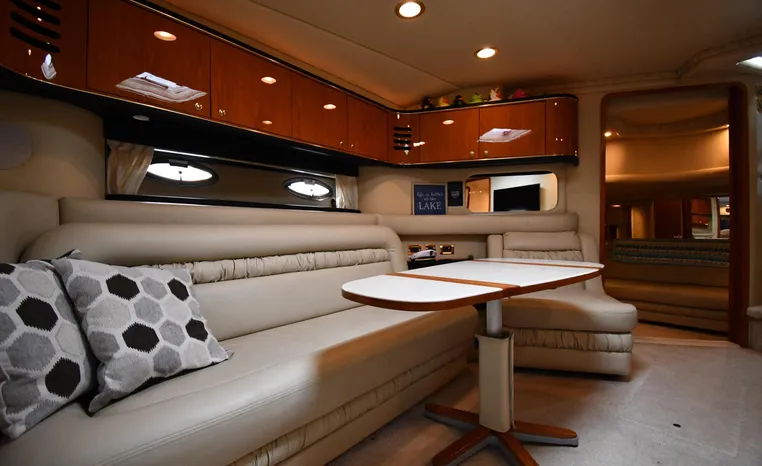 Freshwater / Great Lakes boat since new this vessel features Twin Caterpillar 3208 435-hp Diesel Engine's. Notable features include but are not limited to the following: Air-Conditioning & Heat (2-Units), (2) Heads (Vacuflush) w/Vanity/Sink/Stall-Shower, Cherry Cabinetry, Windlass Anchor w/Forward Pedal-Controls (Note Forward Freshwater Washdown), Hydraulic Swim-Platform, Canvas Package (Forward Convertible-Top w/Forward / Side-Windows / Aft Convertible-Top w/3-Piece Slant-Back Rear), Cockpit Wet Bar w/Sink, Westerbeke 8.0kw Generator, NEW 2025 Electronics Package (Garmin GPSMAP 1643 MFD w/GPS/Chartplotter, Garmin GPSMAP 943 XSV w/Autopilot Interface, Garmin VHF 115 Marine Radio, Starlink w/Seaview-Mount (Professional Install), Premium Fusion Sound System w/(2) Sub-Woofers/AMP/Wired Remote-Control (Note Bluetooth) - Extensive JL-Audio Speakers Throughout Cockpit / Swim-Platform - Note Interface NEMA2000 w/Garmin MFD, and MUCH more!