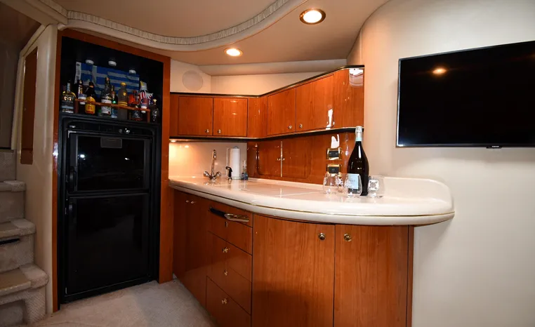 Freshwater / Great Lakes boat since new this vessel features Twin Caterpillar 3208 435-hp Diesel Engine's. Notable features include but are not limited to the following: Air-Conditioning & Heat (2-Units), (2) Heads (Vacuflush) w/Vanity/Sink/Stall-Shower, Cherry Cabinetry, Windlass Anchor w/Forward Pedal-Controls (Note Forward Freshwater Washdown), Hydraulic Swim-Platform, Canvas Package (Forward Convertible-Top w/Forward / Side-Windows / Aft Convertible-Top w/3-Piece Slant-Back Rear), Cockpit Wet Bar w/Sink, Westerbeke 8.0kw Generator, NEW 2025 Electronics Package (Garmin GPSMAP 1643 MFD w/GPS/Chartplotter, Garmin GPSMAP 943 XSV w/Autopilot Interface, Garmin VHF 115 Marine Radio, Starlink w/Seaview-Mount (Professional Install), Premium Fusion Sound System w/(2) Sub-Woofers/AMP/Wired Remote-Control (Note Bluetooth) - Extensive JL-Audio Speakers Throughout Cockpit / Swim-Platform - Note Interface NEMA2000 w/Garmin MFD, and MUCH more!