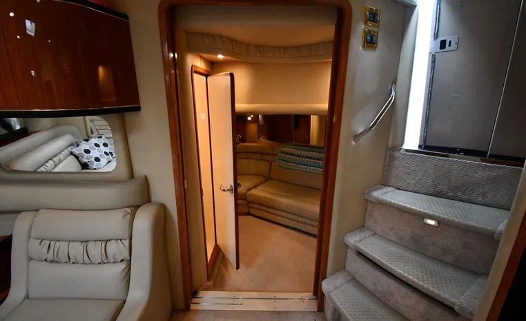 Freshwater / Great Lakes boat since new this vessel features Twin Caterpillar 3208 435-hp Diesel Engine's. Notable features include but are not limited to the following: Air-Conditioning & Heat (2-Units), (2) Heads (Vacuflush) w/Vanity/Sink/Stall-Shower, Cherry Cabinetry, Windlass Anchor w/Forward Pedal-Controls (Note Forward Freshwater Washdown), Hydraulic Swim-Platform, Canvas Package (Forward Convertible-Top w/Forward / Side-Windows / Aft Convertible-Top w/3-Piece Slant-Back Rear), Cockpit Wet Bar w/Sink, Westerbeke 8.0kw Generator, NEW 2025 Electronics Package (Garmin GPSMAP 1643 MFD w/GPS/Chartplotter, Garmin GPSMAP 943 XSV w/Autopilot Interface, Garmin VHF 115 Marine Radio, Starlink w/Seaview-Mount (Professional Install), Premium Fusion Sound System w/(2) Sub-Woofers/AMP/Wired Remote-Control (Note Bluetooth) - Extensive JL-Audio Speakers Throughout Cockpit / Swim-Platform - Note Interface NEMA2000 w/Garmin MFD, and MUCH more!