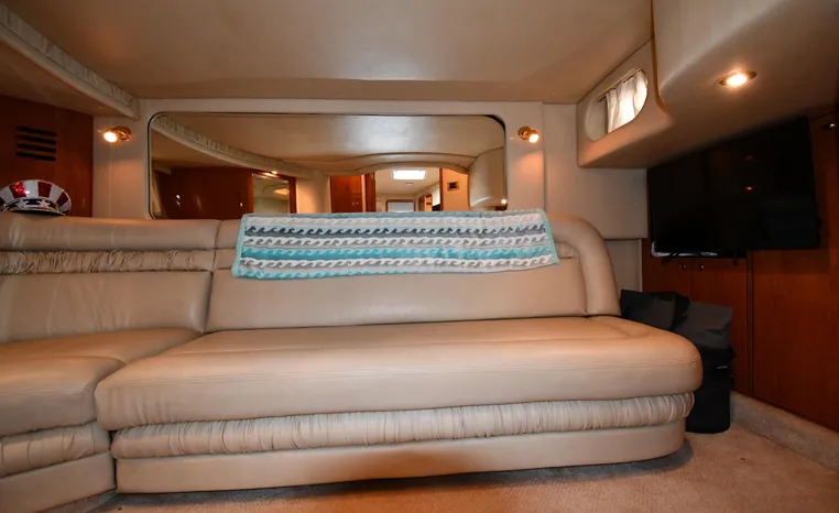 Freshwater / Great Lakes boat since new this vessel features Twin Caterpillar 3208 435-hp Diesel Engine's. Notable features include but are not limited to the following: Air-Conditioning & Heat (2-Units), (2) Heads (Vacuflush) w/Vanity/Sink/Stall-Shower, Cherry Cabinetry, Windlass Anchor w/Forward Pedal-Controls (Note Forward Freshwater Washdown), Hydraulic Swim-Platform, Canvas Package (Forward Convertible-Top w/Forward / Side-Windows / Aft Convertible-Top w/3-Piece Slant-Back Rear), Cockpit Wet Bar w/Sink, Westerbeke 8.0kw Generator, NEW 2025 Electronics Package (Garmin GPSMAP 1643 MFD w/GPS/Chartplotter, Garmin GPSMAP 943 XSV w/Autopilot Interface, Garmin VHF 115 Marine Radio, Starlink w/Seaview-Mount (Professional Install), Premium Fusion Sound System w/(2) Sub-Woofers/AMP/Wired Remote-Control (Note Bluetooth) - Extensive JL-Audio Speakers Throughout Cockpit / Swim-Platform - Note Interface NEMA2000 w/Garmin MFD, and MUCH more!