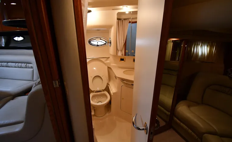 Freshwater / Great Lakes boat since new this vessel features Twin Caterpillar 3208 435-hp Diesel Engine's. Notable features include but are not limited to the following: Air-Conditioning & Heat (2-Units), (2) Heads (Vacuflush) w/Vanity/Sink/Stall-Shower, Cherry Cabinetry, Windlass Anchor w/Forward Pedal-Controls (Note Forward Freshwater Washdown), Hydraulic Swim-Platform, Canvas Package (Forward Convertible-Top w/Forward / Side-Windows / Aft Convertible-Top w/3-Piece Slant-Back Rear), Cockpit Wet Bar w/Sink, Westerbeke 8.0kw Generator, NEW 2025 Electronics Package (Garmin GPSMAP 1643 MFD w/GPS/Chartplotter, Garmin GPSMAP 943 XSV w/Autopilot Interface, Garmin VHF 115 Marine Radio, Starlink w/Seaview-Mount (Professional Install), Premium Fusion Sound System w/(2) Sub-Woofers/AMP/Wired Remote-Control (Note Bluetooth) - Extensive JL-Audio Speakers Throughout Cockpit / Swim-Platform - Note Interface NEMA2000 w/Garmin MFD, and MUCH more!