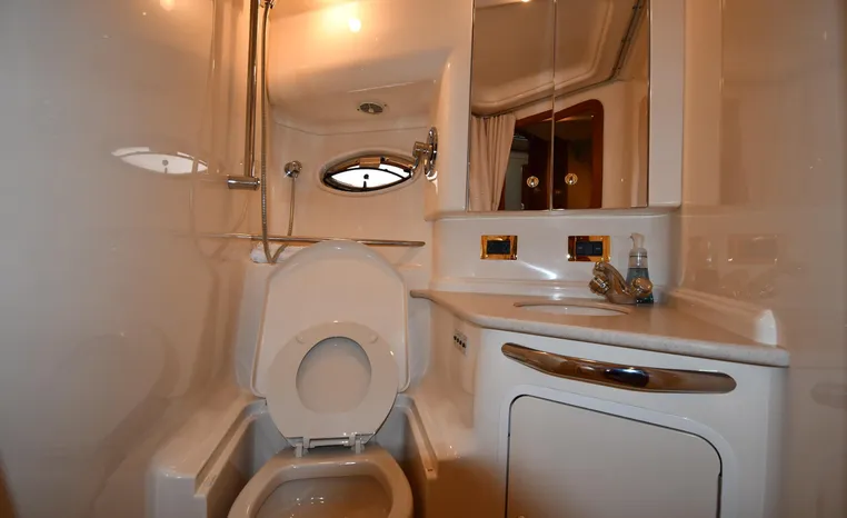 Freshwater / Great Lakes boat since new this vessel features Twin Caterpillar 3208 435-hp Diesel Engine's. Notable features include but are not limited to the following: Air-Conditioning & Heat (2-Units), (2) Heads (Vacuflush) w/Vanity/Sink/Stall-Shower, Cherry Cabinetry, Windlass Anchor w/Forward Pedal-Controls (Note Forward Freshwater Washdown), Hydraulic Swim-Platform, Canvas Package (Forward Convertible-Top w/Forward / Side-Windows / Aft Convertible-Top w/3-Piece Slant-Back Rear), Cockpit Wet Bar w/Sink, Westerbeke 8.0kw Generator, NEW 2025 Electronics Package (Garmin GPSMAP 1643 MFD w/GPS/Chartplotter, Garmin GPSMAP 943 XSV w/Autopilot Interface, Garmin VHF 115 Marine Radio, Starlink w/Seaview-Mount (Professional Install), Premium Fusion Sound System w/(2) Sub-Woofers/AMP/Wired Remote-Control (Note Bluetooth) - Extensive JL-Audio Speakers Throughout Cockpit / Swim-Platform - Note Interface NEMA2000 w/Garmin MFD, and MUCH more!