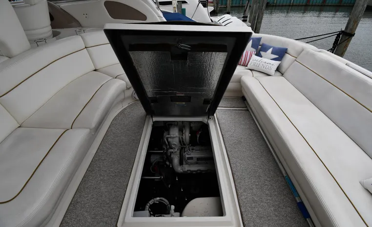 Freshwater / Great Lakes boat since new this vessel features Twin Caterpillar 3208 435-hp Diesel Engine's. Notable features include but are not limited to the following: Air-Conditioning & Heat (2-Units), (2) Heads (Vacuflush) w/Vanity/Sink/Stall-Shower, Cherry Cabinetry, Windlass Anchor w/Forward Pedal-Controls (Note Forward Freshwater Washdown), Hydraulic Swim-Platform, Canvas Package (Forward Convertible-Top w/Forward / Side-Windows / Aft Convertible-Top w/3-Piece Slant-Back Rear), Cockpit Wet Bar w/Sink, Westerbeke 8.0kw Generator, NEW 2025 Electronics Package (Garmin GPSMAP 1643 MFD w/GPS/Chartplotter, Garmin GPSMAP 943 XSV w/Autopilot Interface, Garmin VHF 115 Marine Radio, Starlink w/Seaview-Mount (Professional Install), Premium Fusion Sound System w/(2) Sub-Woofers/AMP/Wired Remote-Control (Note Bluetooth) - Extensive JL-Audio Speakers Throughout Cockpit / Swim-Platform - Note Interface NEMA2000 w/Garmin MFD, and MUCH more!