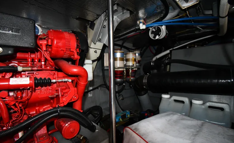 Freshwater / Great Lakes boat since new this vessel features Twin Caterpillar 3208 435-hp Diesel Engine's. Notable features include but are not limited to the following: Air-Conditioning & Heat (2-Units), (2) Heads (Vacuflush) w/Vanity/Sink/Stall-Shower, Cherry Cabinetry, Windlass Anchor w/Forward Pedal-Controls (Note Forward Freshwater Washdown), Hydraulic Swim-Platform, Canvas Package (Forward Convertible-Top w/Forward / Side-Windows / Aft Convertible-Top w/3-Piece Slant-Back Rear), Cockpit Wet Bar w/Sink, Westerbeke 8.0kw Generator, NEW 2025 Electronics Package (Garmin GPSMAP 1643 MFD w/GPS/Chartplotter, Garmin GPSMAP 943 XSV w/Autopilot Interface, Garmin VHF 115 Marine Radio, Starlink w/Seaview-Mount (Professional Install), Premium Fusion Sound System w/(2) Sub-Woofers/AMP/Wired Remote-Control (Note Bluetooth) - Extensive JL-Audio Speakers Throughout Cockpit / Swim-Platform - Note Interface NEMA2000 w/Garmin MFD, and MUCH more!