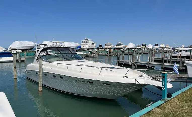 Freshwater / Great Lakes boat since new this vessel features Twin Caterpillar 3208 435-hp Diesel Engine's. Notable features include but are not limited to the following: Air-Conditioning & Heat (2-Units), (2) Heads (Vacuflush) w/Vanity/Sink/Stall-Shower, Cherry Cabinetry, Windlass Anchor w/Forward Pedal-Controls (Note Forward Freshwater Washdown), Hydraulic Swim-Platform, Canvas Package (Forward Convertible-Top w/Forward / Side-Windows / Aft Convertible-Top w/3-Piece Slant-Back Rear), Cockpit Wet Bar w/Sink, Westerbeke 8.0kw Generator, NEW 2025 Electronics Package (Garmin GPSMAP 1643 MFD w/GPS/Chartplotter, Garmin GPSMAP 943 XSV w/Autopilot Interface, Garmin VHF 115 Marine Radio, Starlink w/Seaview-Mount (Professional Install), Premium Fusion Sound System w/(2) Sub-Woofers/AMP/Wired Remote-Control (Note Bluetooth) - Extensive JL-Audio Speakers Throughout Cockpit / Swim-Platform - Note Interface NEMA2000 w/Garmin MFD, and MUCH more!