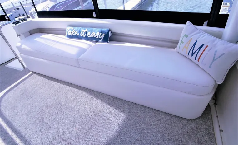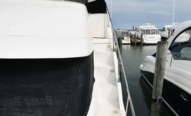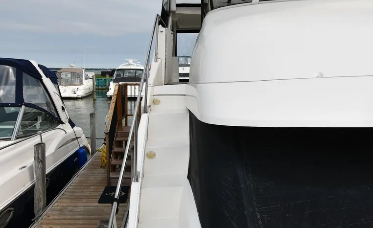 High-sided motoryacht with Silverton's "SideWalk" deck plan is long on living space. Enormous full beam salon rivals most 45-footers in size, comfort. Highlights include stall showers in boat heads, fully equipped galley with hardwood floor, extended swim platform (optional), foredeck sun pan. Huge bridge can seat a small crowd. A huge success, over 600 were sold.