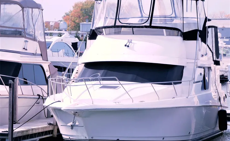 Freshwater / Great Lakes boat since new this vessel features Twin Crusader 8.2-litre EFI 405-HP Gas Engine's with only 438 original hours! Notable features include but are not limited to the following: Air-Conditioning & Heat (2-Zones), (2) Heads (Electric Flush) w/Vanity/Sink/Stall Showers, Kohler 8.0kw Generator, Windlass Anchor, Complete Electronics Package (Standard Horizon Explorer VHF Marine Radio (New in 2023), Raytheon C-Series GPS w/Chartplotter, Raytheon R80 Pathfinder Radar, Autopilot, etc.), Aft Deck Hardtop w/Full Isin-Glass Surround; Aft Deck Wet Bar w/Sink / Ice-Maker, Transom Shower, and MUCH more!