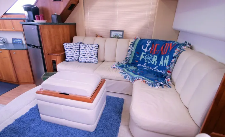 Freshwater / Great Lakes boat since new this vessel features Twin Crusader 8.2-litre EFI 405-HP Gas Engine's with only 438 original hours! Notable features include but are not limited to the following: Air-Conditioning & Heat (2-Zones), (2) Heads (Electric Flush) w/Vanity/Sink/Stall Showers, Kohler 8.0kw Generator, Windlass Anchor, Complete Electronics Package (Standard Horizon Explorer VHF Marine Radio (New in 2023), Raytheon C-Series GPS w/Chartplotter, Raytheon R80 Pathfinder Radar, Autopilot, etc.), Aft Deck Hardtop w/Full Isin-Glass Surround; Aft Deck Wet Bar w/Sink / Ice-Maker, Transom Shower, and MUCH more!