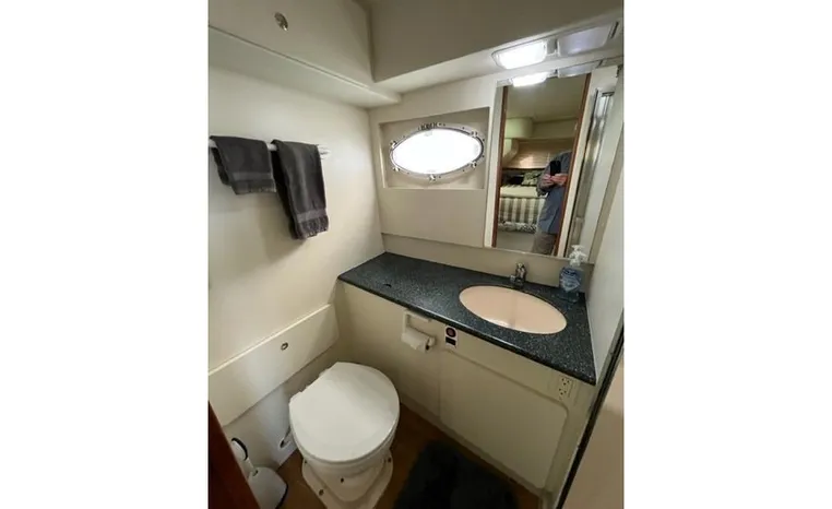 Freshwater / Great Lakes boat since new this vessel features Twin Crusader 8.2-litre EFI 405-HP Gas Engine's with only 438 original hours! Notable features include but are not limited to the following: Air-Conditioning & Heat (2-Zones), (2) Heads (Electric Flush) w/Vanity/Sink/Stall Showers, Kohler 8.0kw Generator, Windlass Anchor, Complete Electronics Package (Standard Horizon Explorer VHF Marine Radio (New in 2023), Raytheon C-Series GPS w/Chartplotter, Raytheon R80 Pathfinder Radar, Autopilot, etc.), Aft Deck Hardtop w/Full Isin-Glass Surround; Aft Deck Wet Bar w/Sink / Ice-Maker, Transom Shower, and MUCH more!