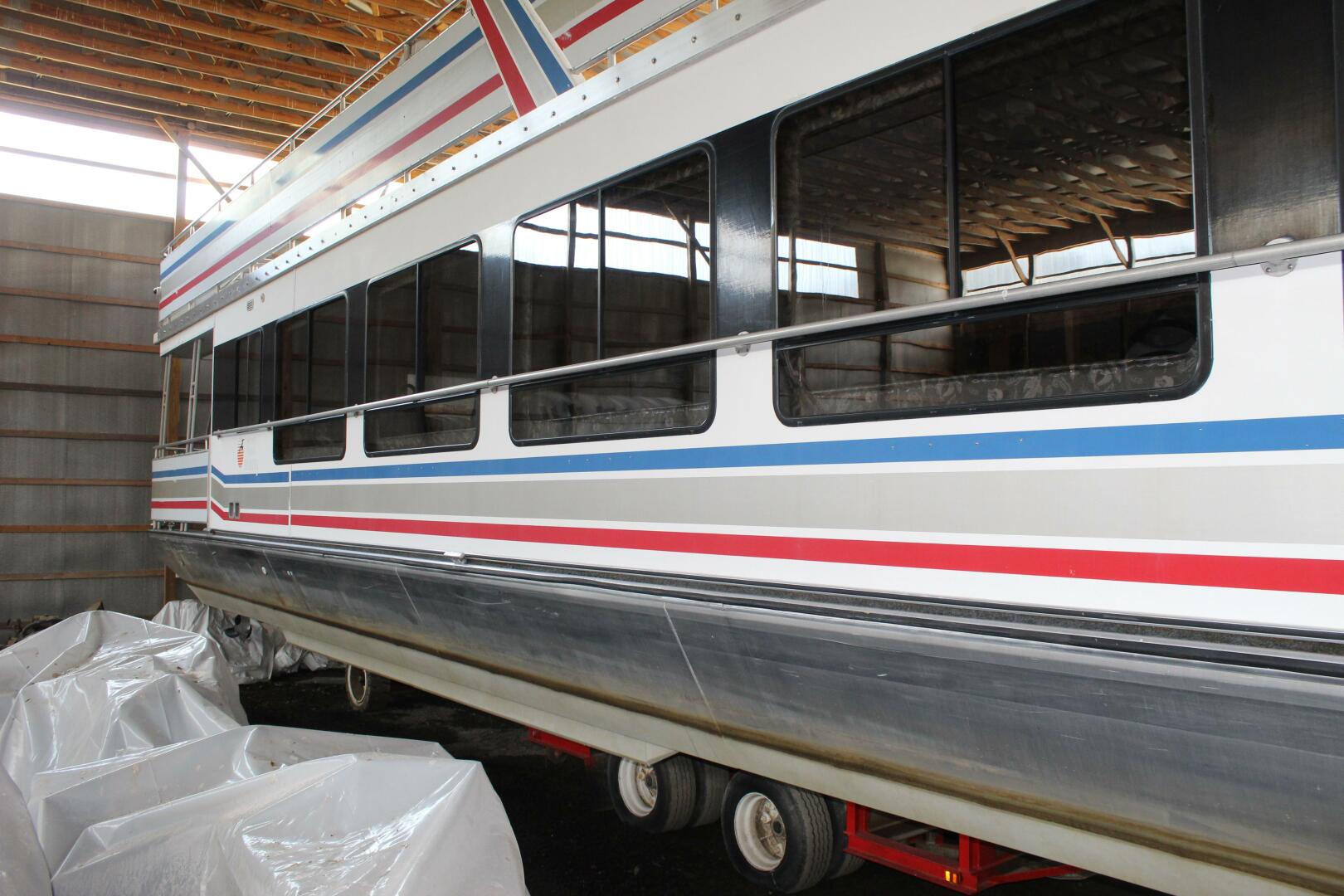 Unleash your dreams with this rare, two-story pleasure and cruise boat—an incredible opportunity for business or unforgettable adventures on the water! The top deck is open and spacious, perfect for sightseeing tours, sunbathing, or hosting lively parties under the open sky. Downstairs, you’ll find generous seating for large groups, two modern restrooms, and dedicated areas for food service and a bar, making it ideal for dinner cruises or private events. Massive windows keep your guests connected to the breathtaking views, no matter where they sit.Meticulously maintained and always stored off-season, this boat is in fantastic condition. It comes packed with extras: an additional motor, a spare outboard (both in crates), and not one but two float-on trailers (75' and 80')—making transport a breeze. Delivery can even be arranged if needed!Whether you envision running sightseeing tours, hosting corporate events, or launching a luxury dinner cruise business, the possibilities are endless. Includes all documentation, coast guard reports, inspections, and appraisals for peace of mind. Currently in secure storage and ready for its next chapter—don’t miss out on this unique opportunity this vessel brings!