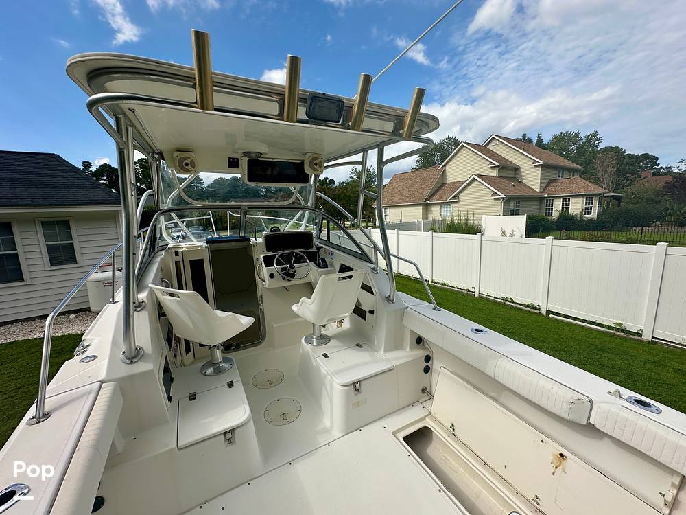 This boat comes with freshwater and raw water washdowns, Lenco trim tabs, a GPS and fishfinder, stereo system, and VHF radio. An anchor with rope and chain adds confidence when you're on the hook, while interior cushions ensure comfort in the cabin. It even includes a porta-potty.