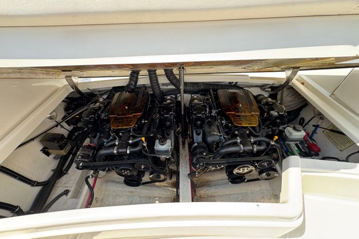 Both motors replaced at 332 hours with brand new Mercruiser factory (complete) motorsĀ