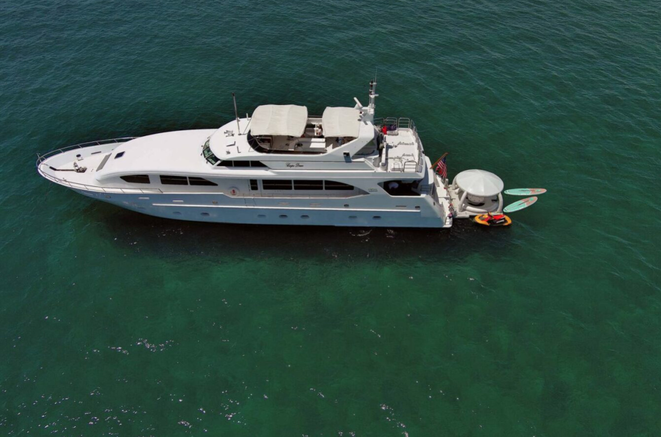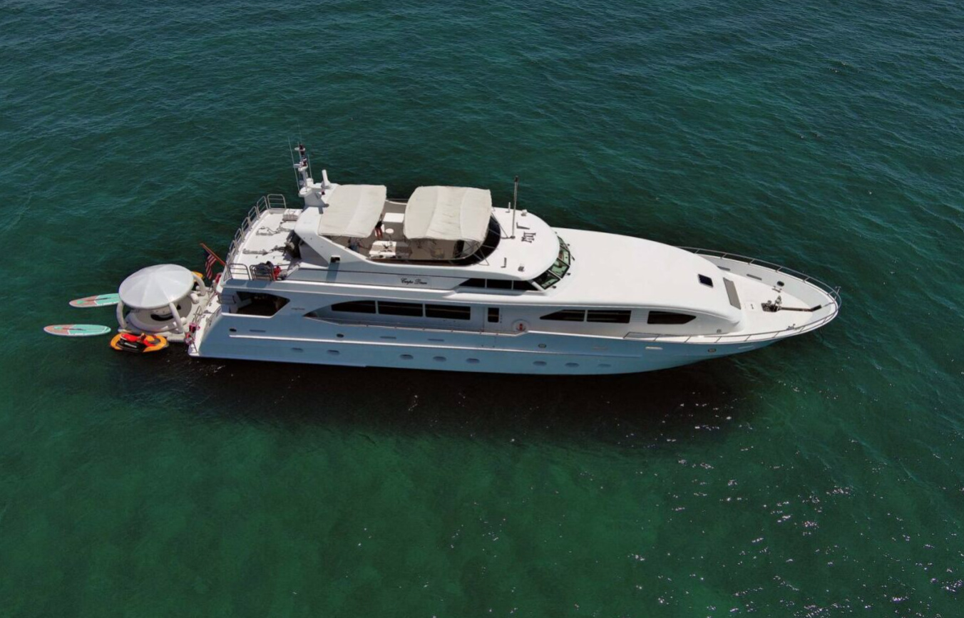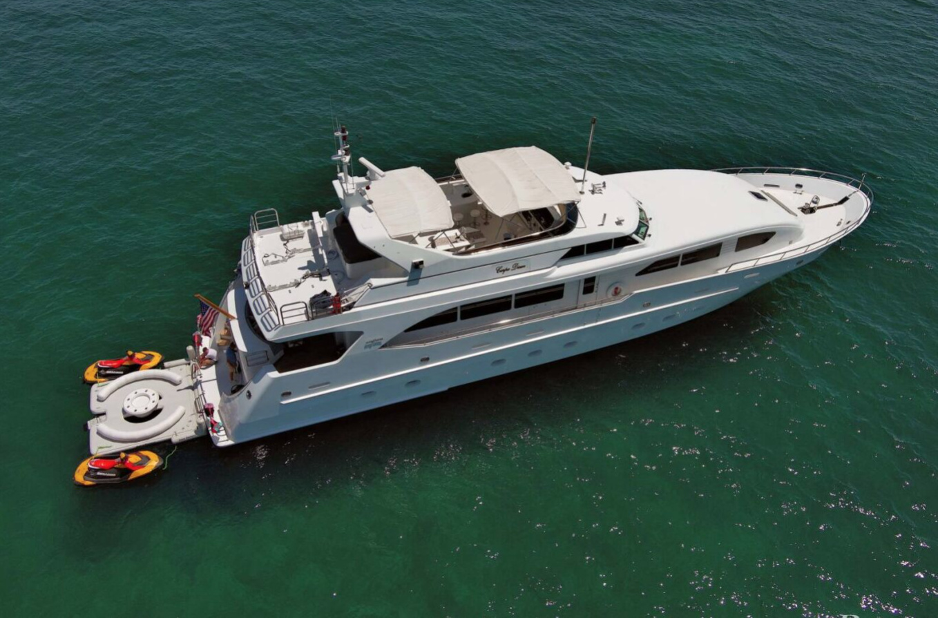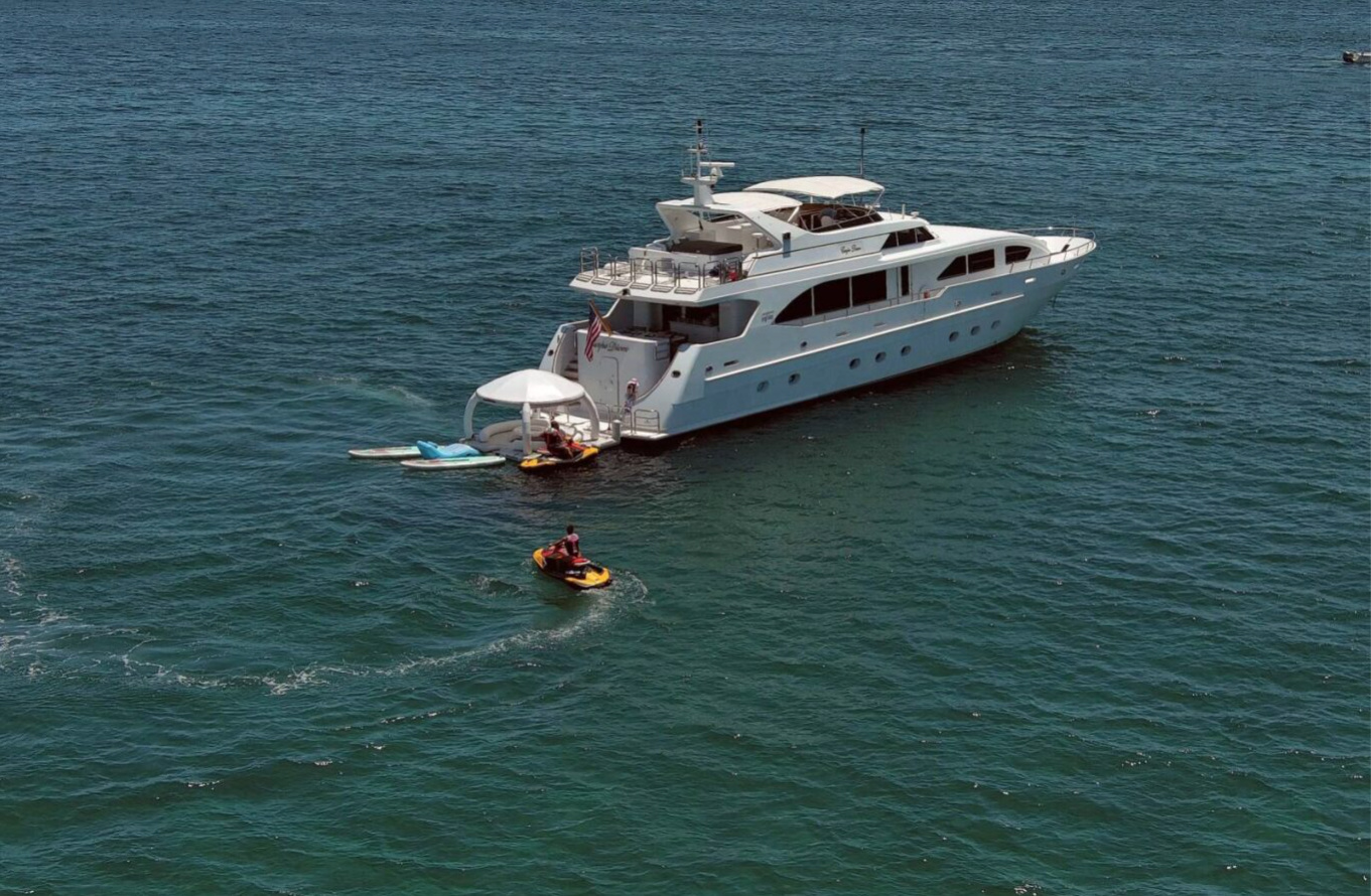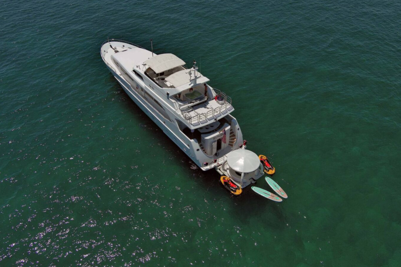 • California Air Compressor, (2) 12-person life rafts, generator starters, main electrical panel, hydraulic hoses, battery charger, all new batteries, galley & captain’s cabin AC systems, anodes, antifoul paint, (2) new icemakers, complete entertainment & navigation system upgrades, CCTV system, LED interior & exterior lights, Jacuzzi, Aqua Bana Party Bana, all new bedding, new galley flooring, stern paint, new teak stairs, new carpets, shaft seals, stabilizer seals & hoses, new aft deck teak chairs, (2) new circulation pumps