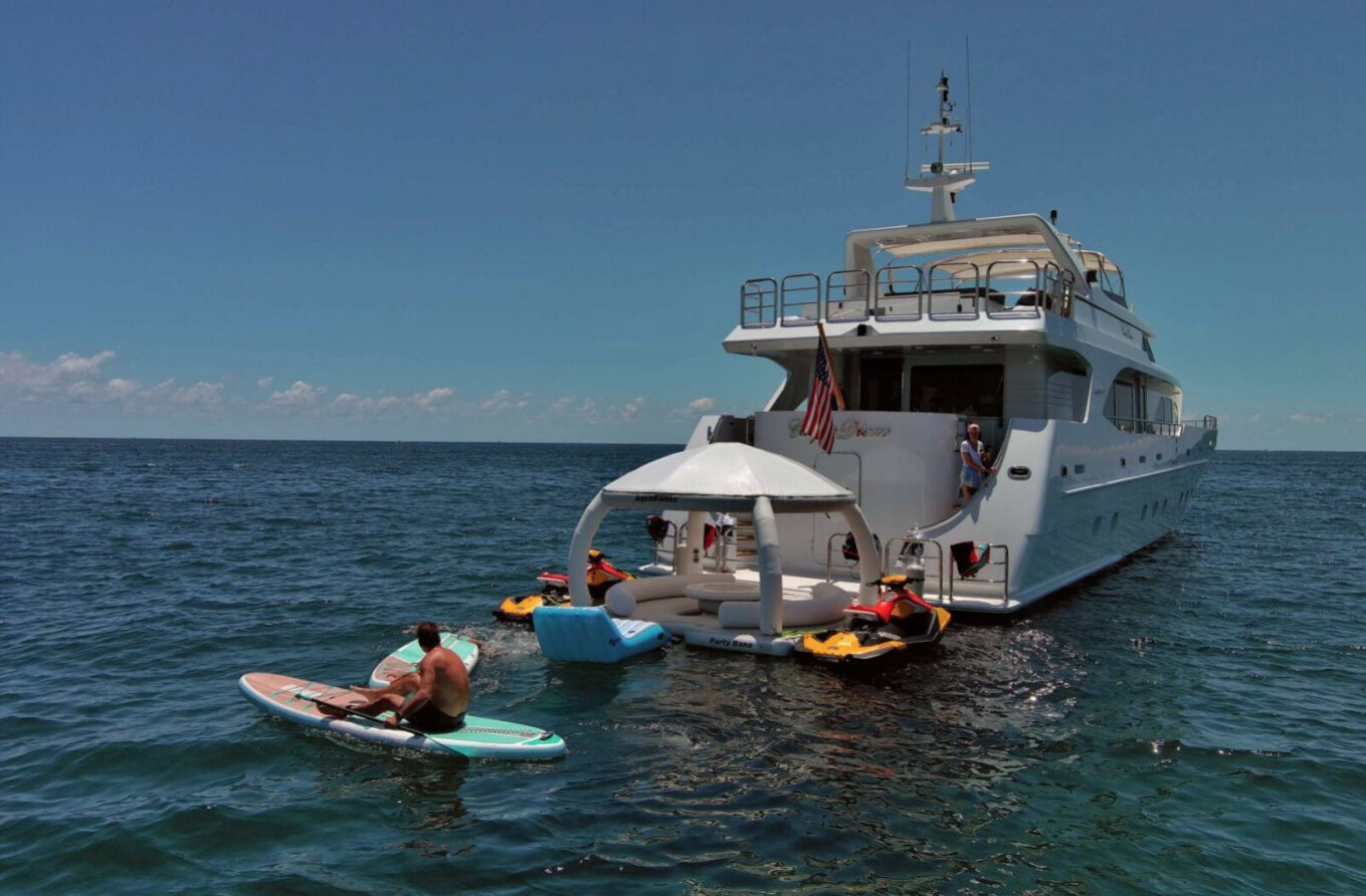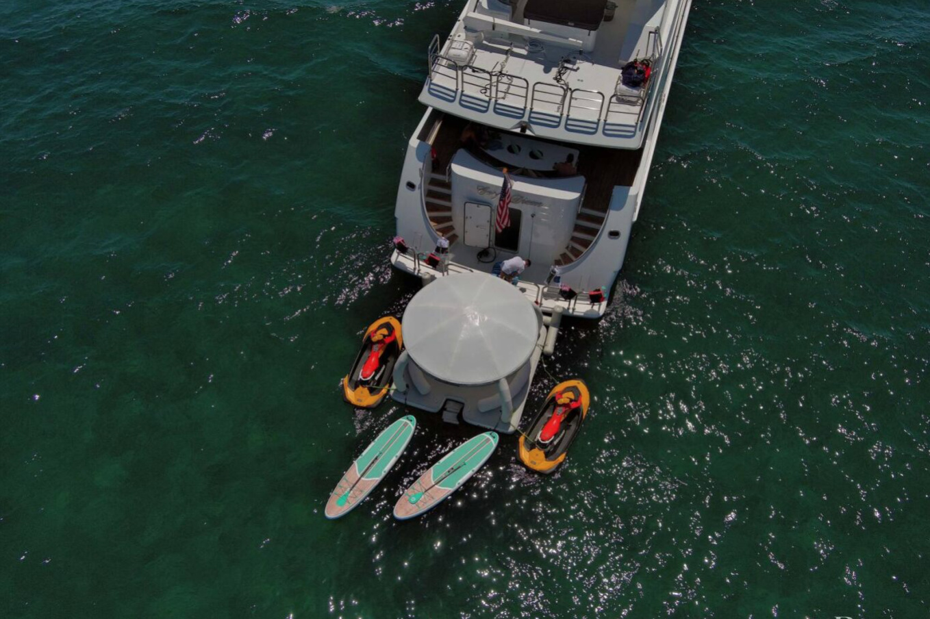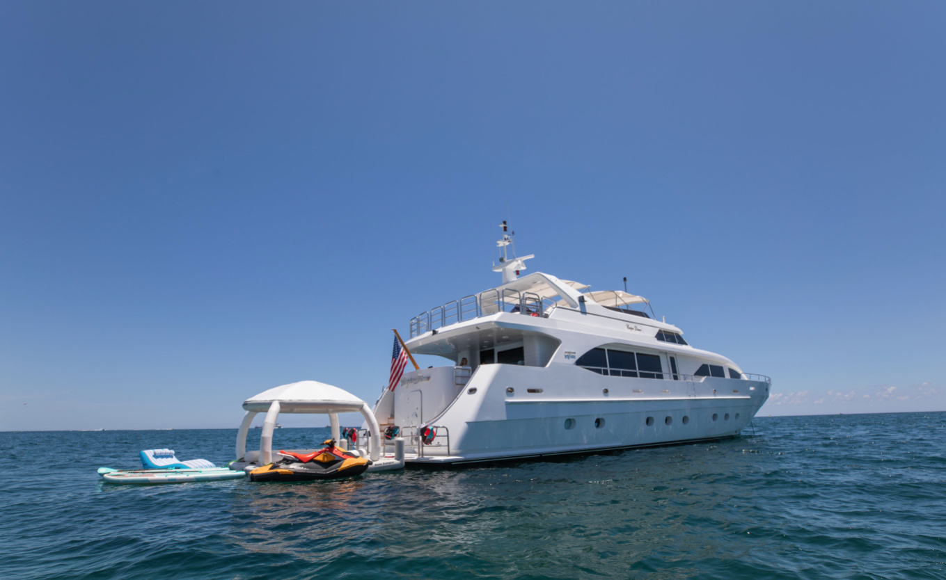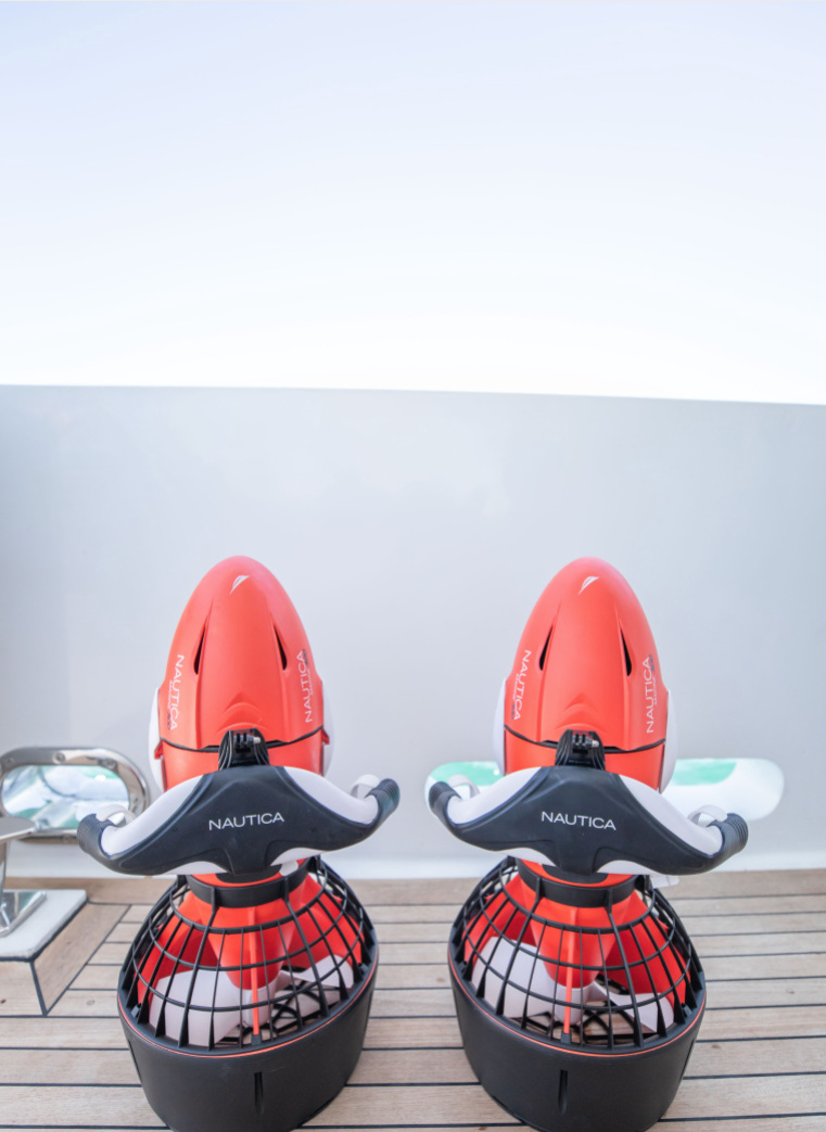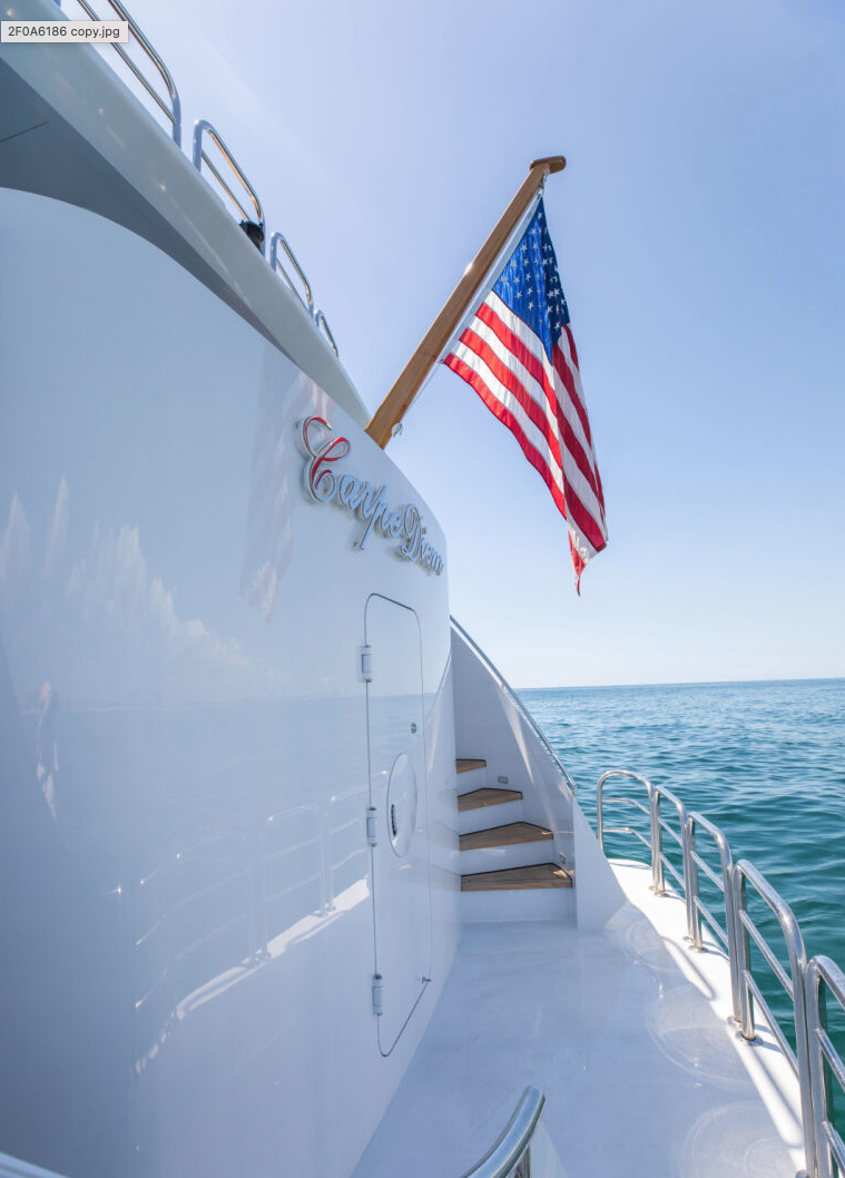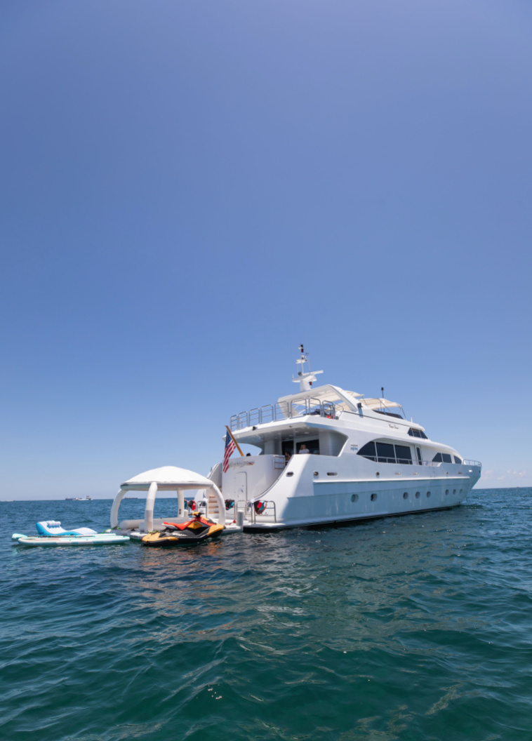 • California Air Compressor, (2) 12-person life rafts, generator starters, main electrical panel, hydraulic hoses, battery charger, all new batteries, galley & captain’s cabin AC systems, anodes, antifoul paint, (2) new icemakers, complete entertainment & navigation system upgrades, CCTV system, LED interior & exterior lights, Jacuzzi, Aqua Bana Party Bana, all new bedding, new galley flooring, stern paint, new teak stairs, new carpets, shaft seals, stabilizer seals & hoses, new aft deck teak chairs, (2) new circulation pumps
