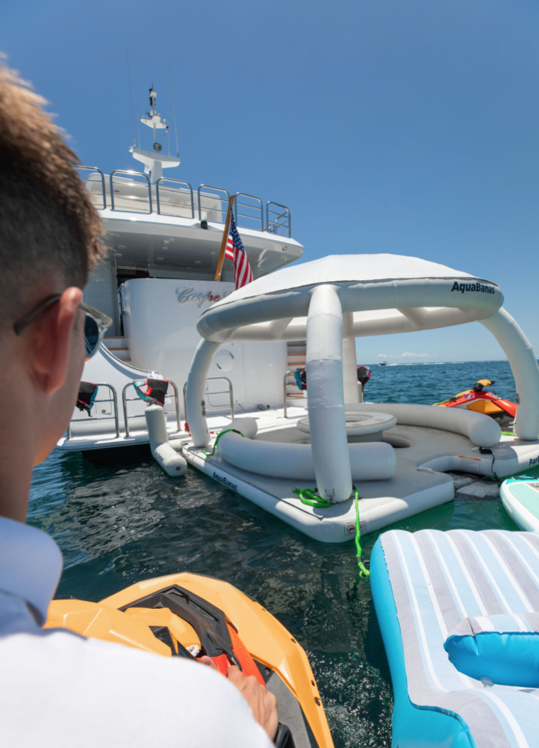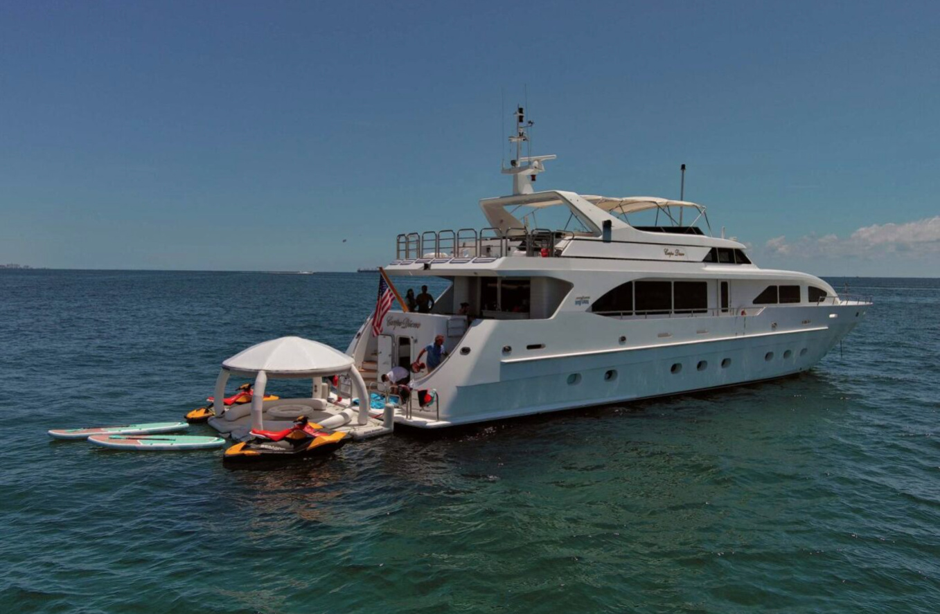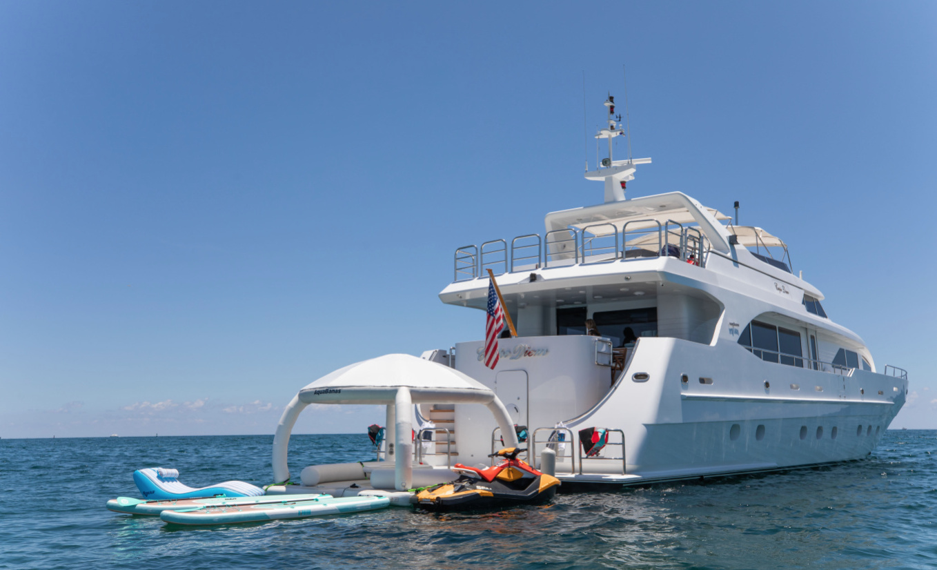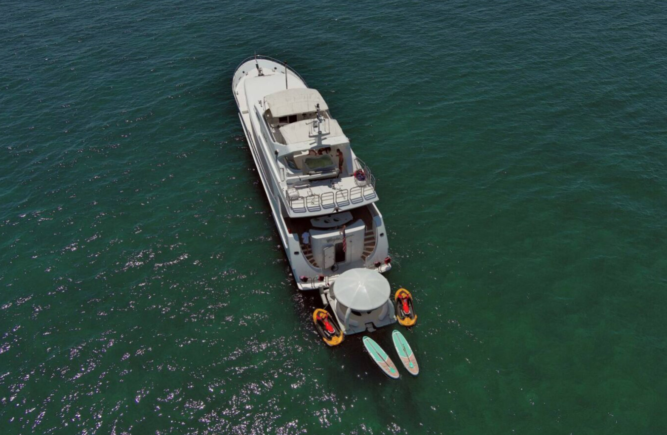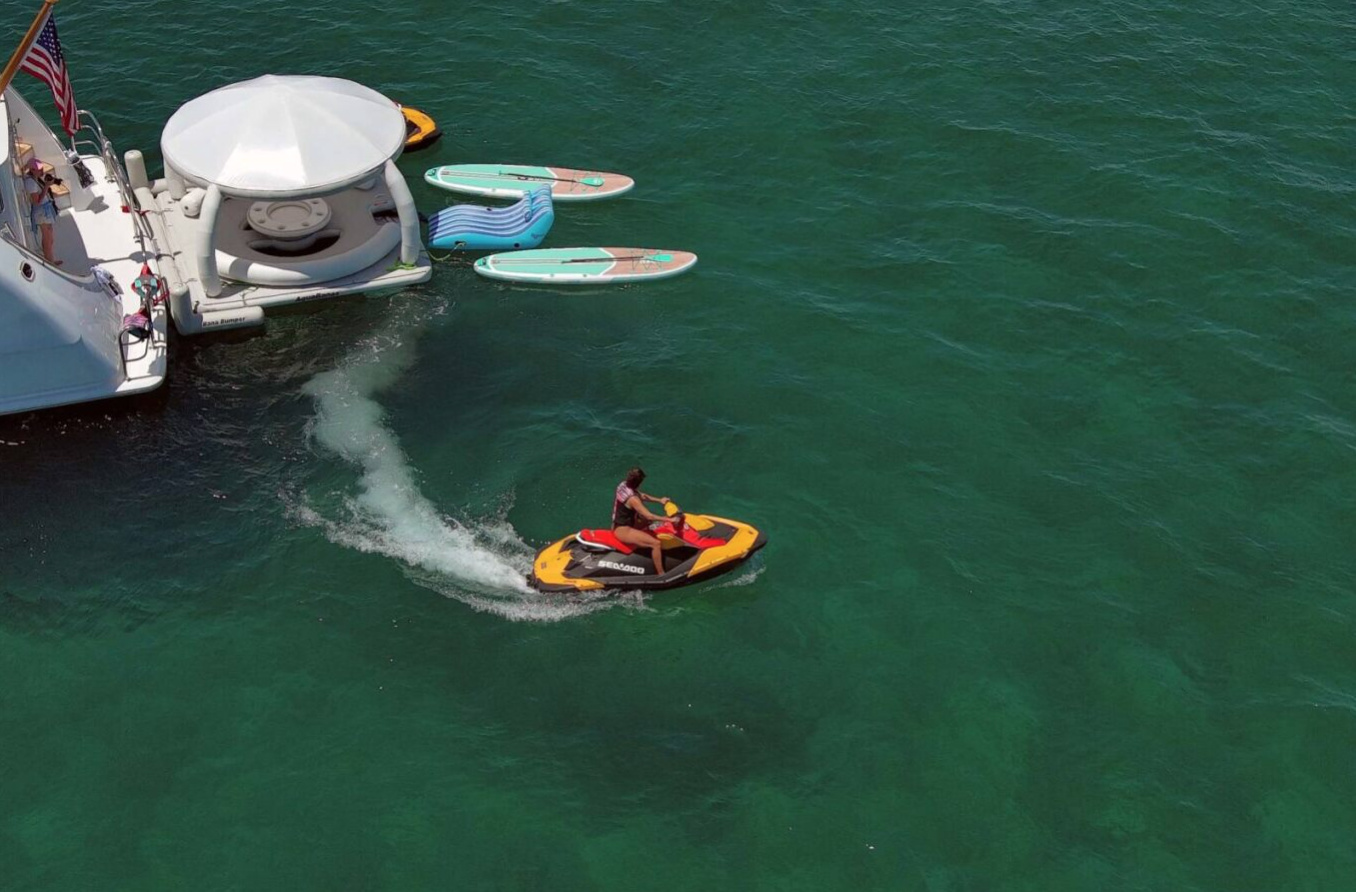 • California Air Compressor, (2) 12-person life rafts, generator starters, main electrical panel, hydraulic hoses, battery charger, all new batteries, galley & captain’s cabin AC systems, anodes, antifoul paint, (2) new icemakers, complete entertainment & navigation system upgrades, CCTV system, LED interior & exterior lights, Jacuzzi, Aqua Bana Party Bana, all new bedding, new galley flooring, stern paint, new teak stairs, new carpets, shaft seals, stabilizer seals & hoses, new aft deck teak chairs, (2) new circulation pumps