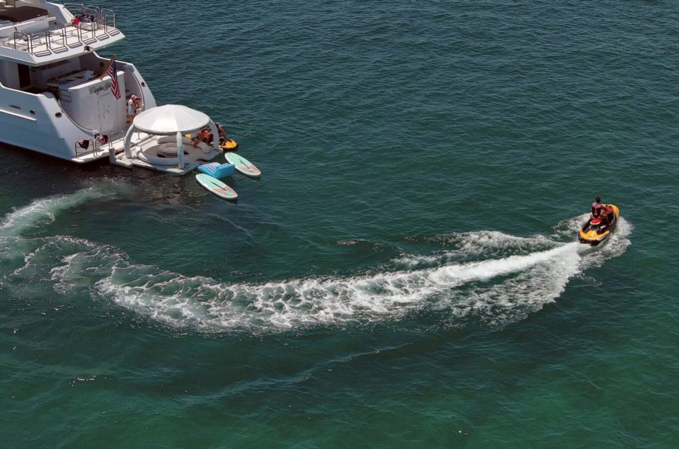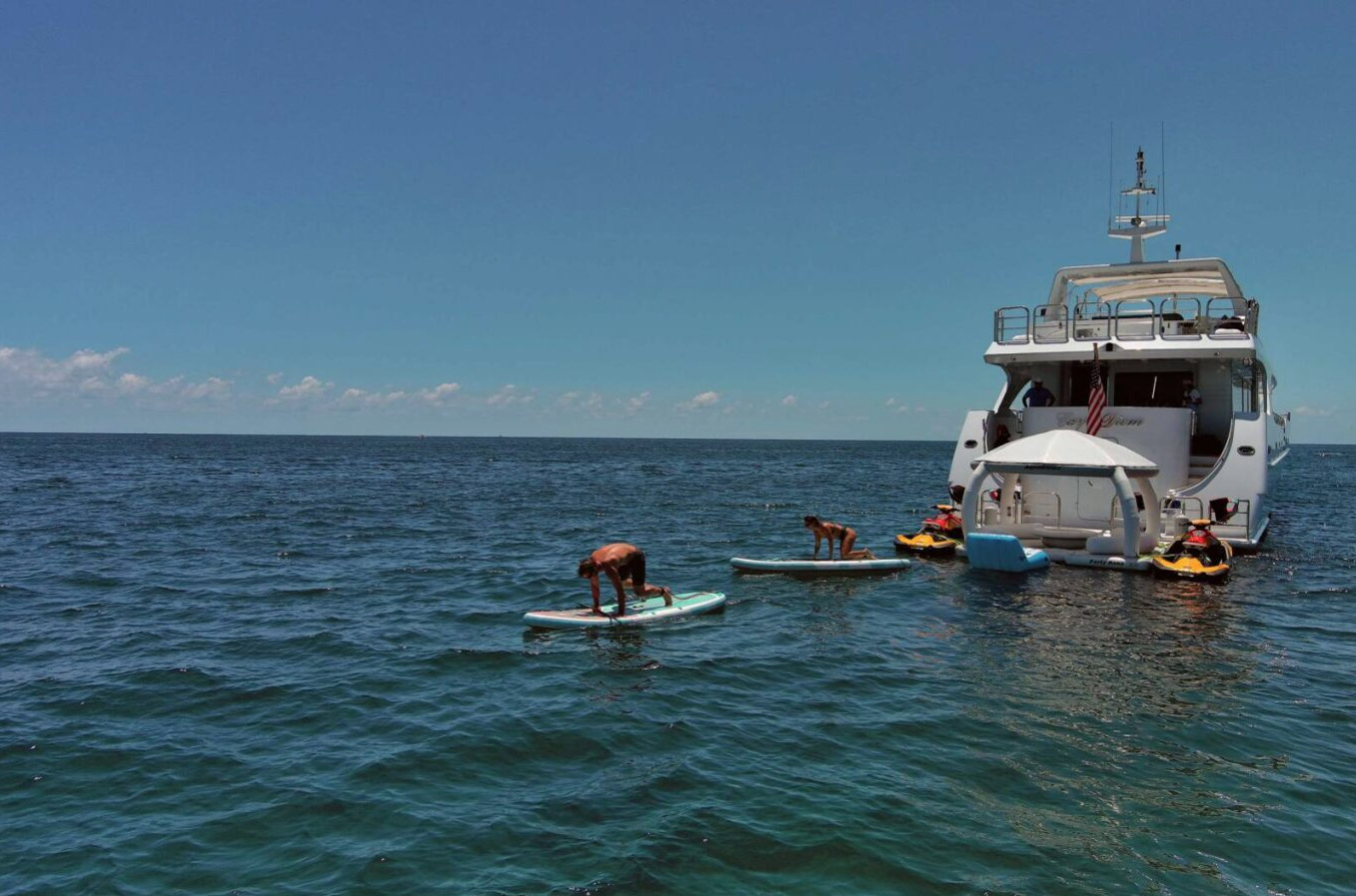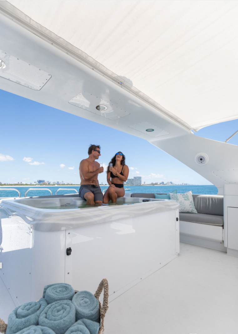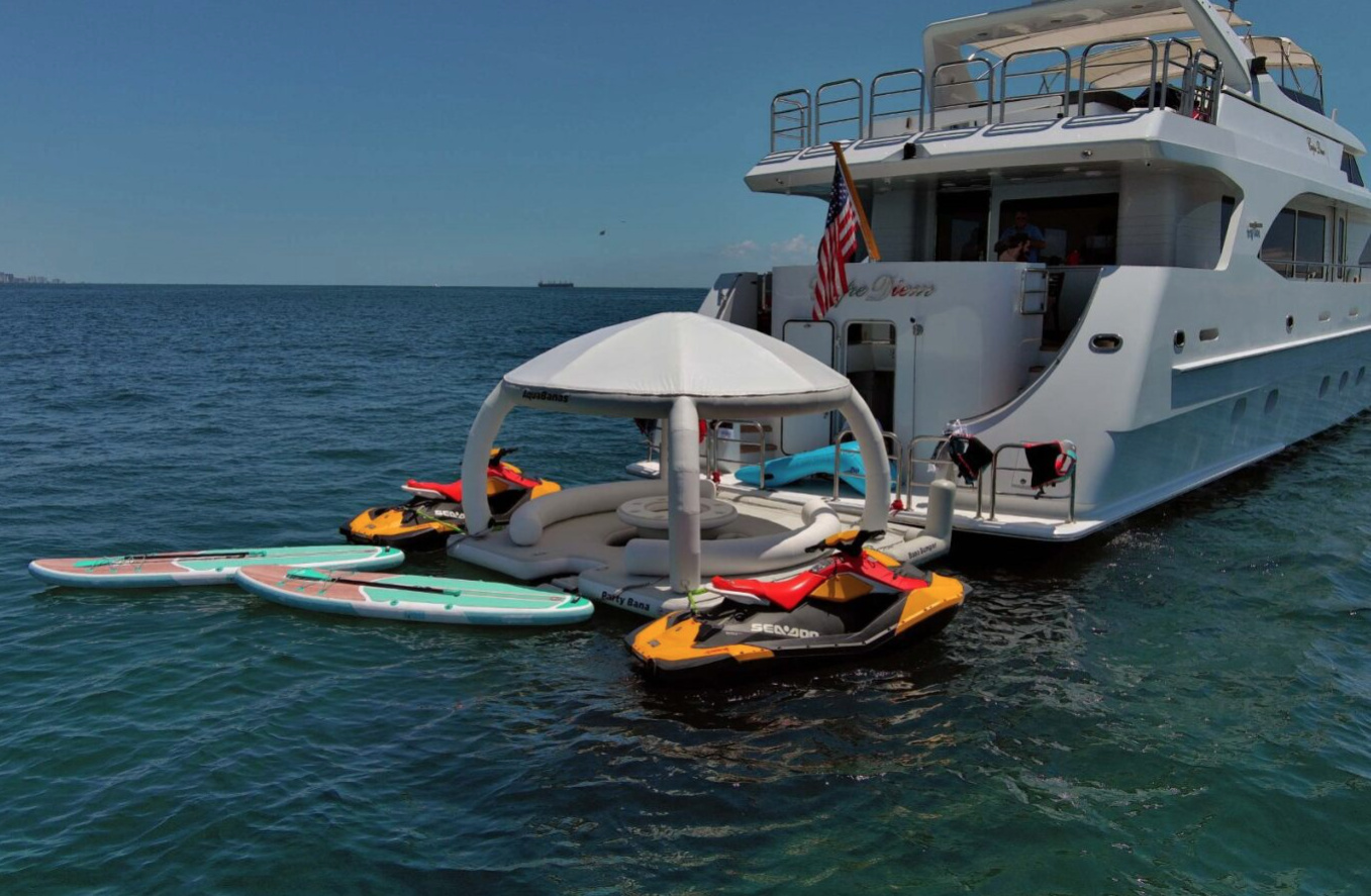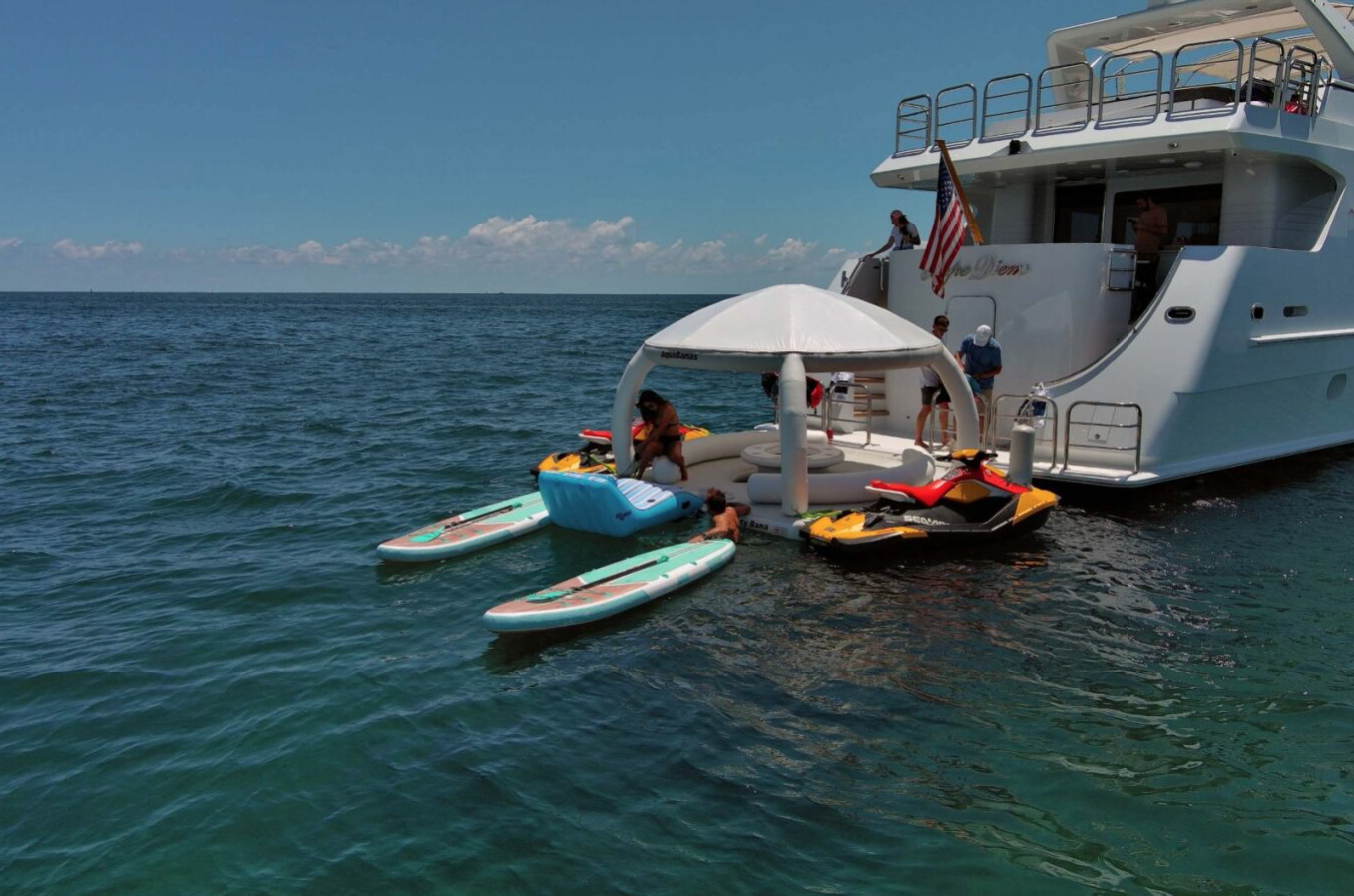 • California Air Compressor, (2) 12-person life rafts, generator starters, main electrical panel, hydraulic hoses, battery charger, all new batteries, galley & captain’s cabin AC systems, anodes, antifoul paint, (2) new icemakers, complete entertainment & navigation system upgrades, CCTV system, LED interior & exterior lights, Jacuzzi, Aqua Bana Party Bana, all new bedding, new galley flooring, stern paint, new teak stairs, new carpets, shaft seals, stabilizer seals & hoses, new aft deck teak chairs, (2) new circulation pumps