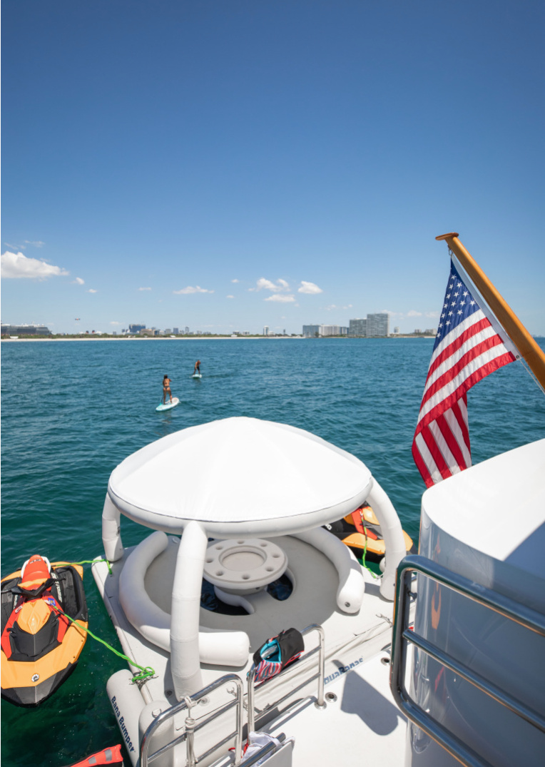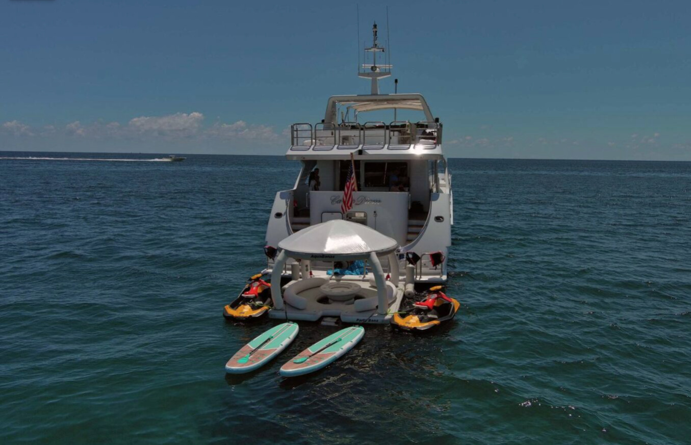 • Lighting & Security: Back-lit stainless steel boat name, Ring Camera at engine room entrance, (4) Lumitec underwater lights